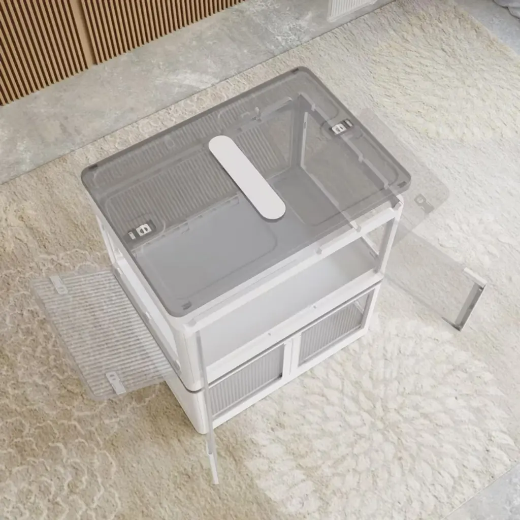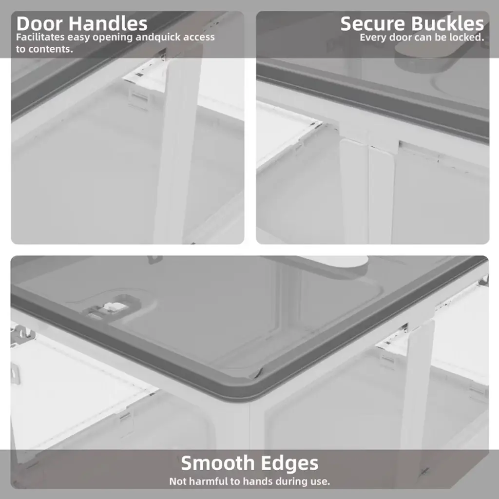 3-pack Transparent Stackable Storage Bins With 5 Doors To Open With Wheels, Folding Plastic Craft Containers Large Closet Organizers Box For Bedrooms