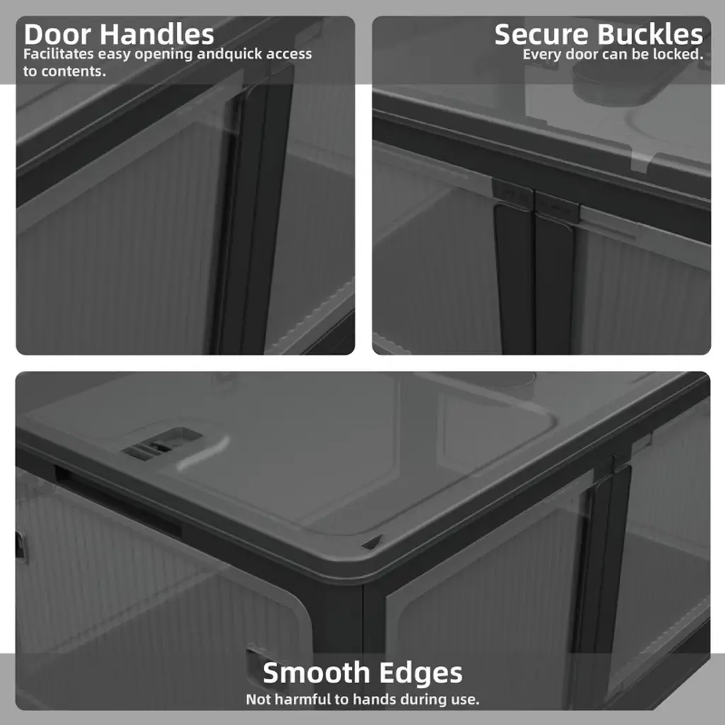 3-pack Transparent Stackable Storage Bins With 5 Doors To Open With Wheels, Folding Plastic Craft Containers Large Closet Organizers Box For Bedrooms