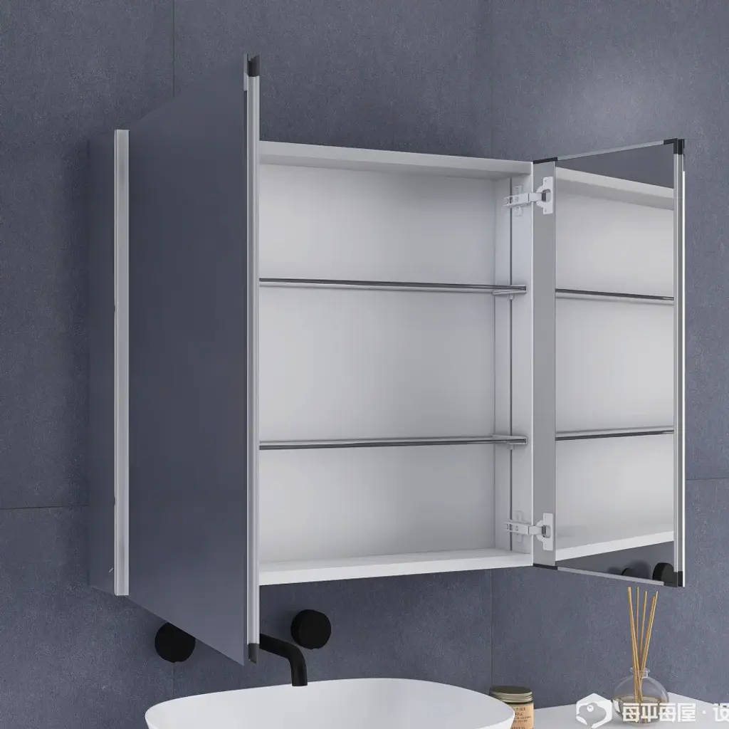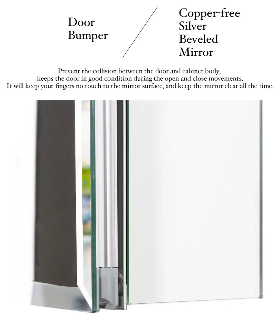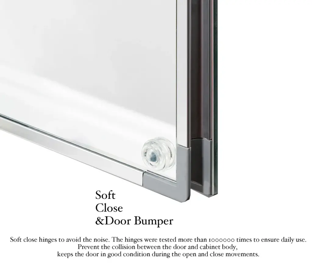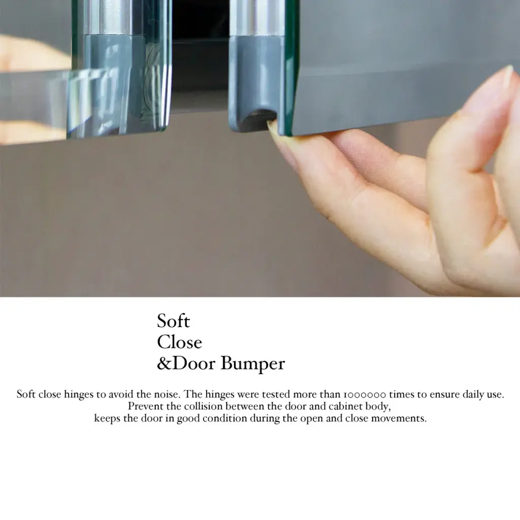 This medicine cabinet is made of high-quality aluminum, it has an elegant and durable appearance. The texture and gloss of aluminum make the mirror cabinet more modern and high-grade, suitable for matching with a variety of decorative styles in the bathroom or room. This aluminum mirror cabinet features a stylish and generous design that adds modernity and utility to your bathroom or room through high-quality materials, careful detailing, and ample storage space. This mirror cabinet features a quiet hinge mechanism that ensures quiet operation during use. Mute hinges are designed to minimize noise and friction when opening or closing cabinet doors. Whether you use the mirror cabinet in the morning or at night, it will not produce any loud or obnoxious sounds, ensuring a quiet atmosphere for your family or neighbors. This feature is also suitable for hotels, hospitals, and other places that need a quiet environment. Removable hinge for easy adjustment.Double-Sided Mirror- With a high-definition mirror with a beveled edge, Double-sided mirror high-definition imaging. Cabinet''s up and down are the same profiles, which helps for a turnover installation to get an opposite door opening.Copper-free Silver Mirror- The face mirror is made of copper-free silver mirrors, with an elegant beveled pattern. Aluminum mirror cabinet, double-side mirrored door.Soft-closing hinge- Soft-closing hinge gives you a quiet bathroom environment. Adjustable and removable hinges, easy to adjust.Adequate Storage Space- Large space as a good organizer. Adjustable shelves provide large storage space for your bath items, make-up items, and medicines.Adjustable shelves- The 7mm tempered glass shelves are strong and safe. Easy operation for adjusting the height.Rust Resistant- The rust-resistant surface is further protected from corrosion and oxidation by meticulous finishing. Anti-rust can prolong the product''s service life and is easy to clean and maintain.Waterproof- IP44-rated waterproof medicine cabinet provides better durability and safety in your bathroom.About package- The packaging is carefully packed to better protect the cabinet and mirror during shipping; it passed all tests including drop, impact, and heavy pressure tests.