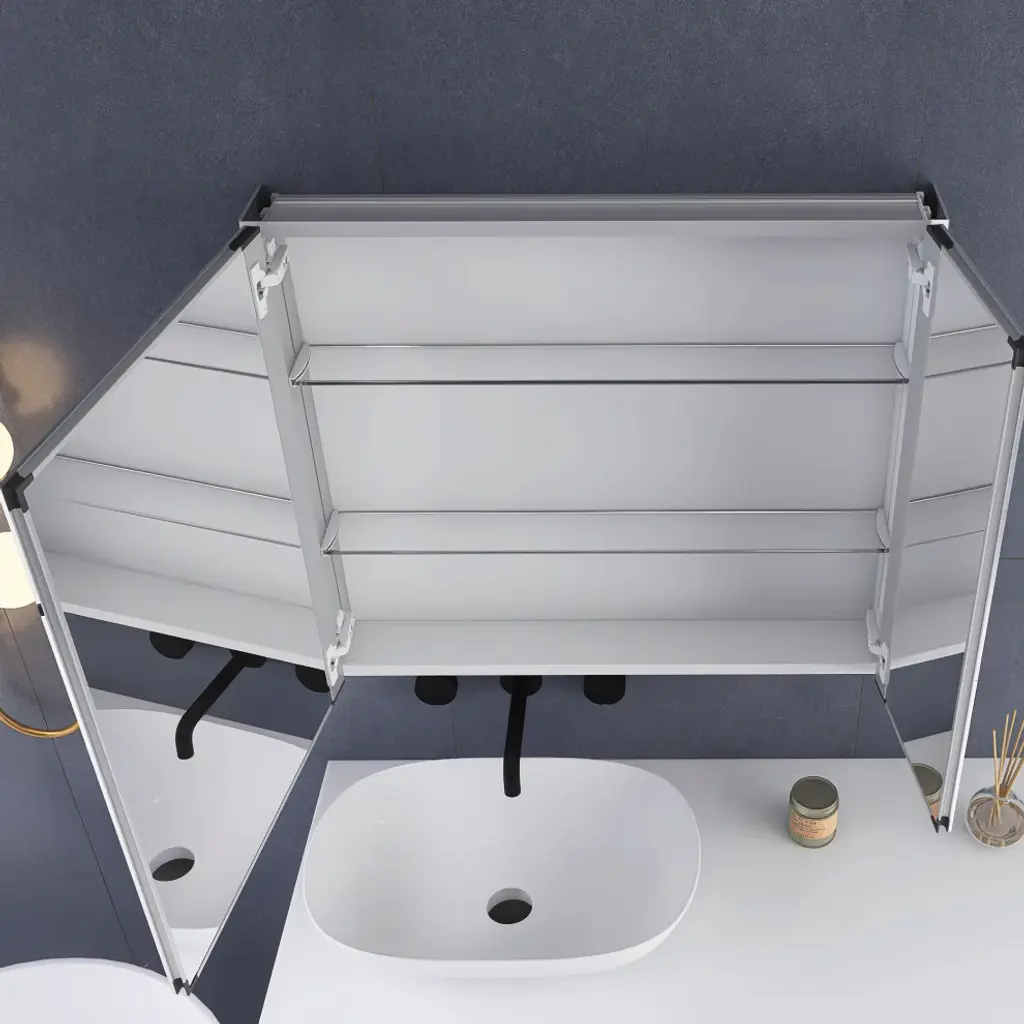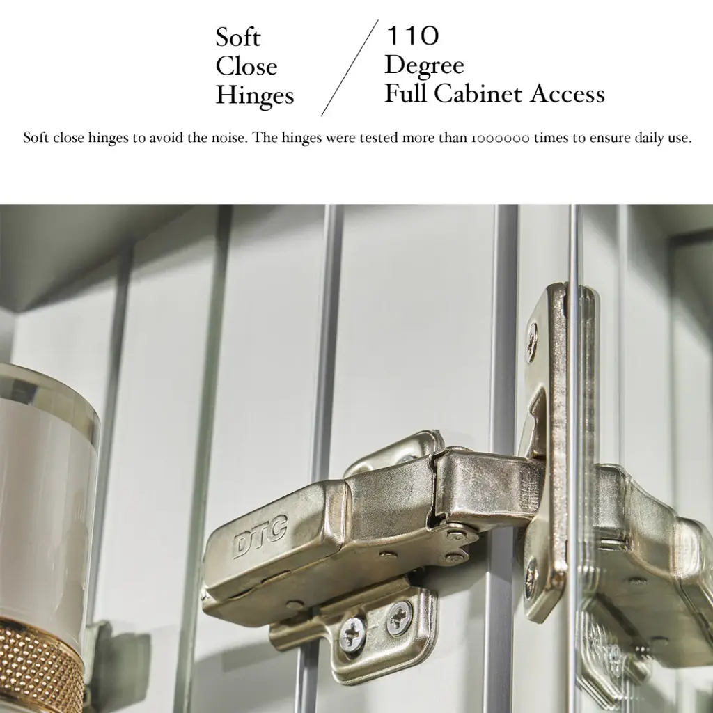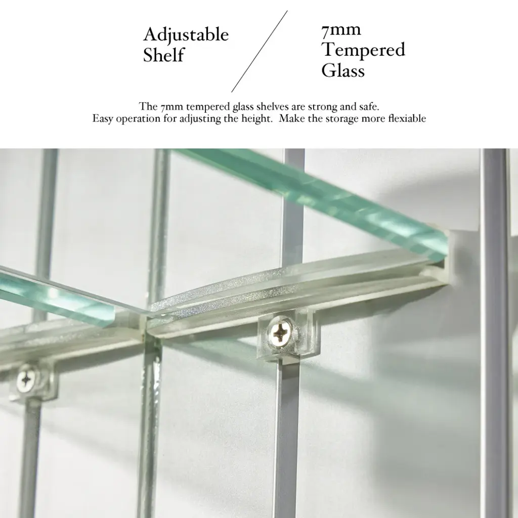 This medicine cabinet is made of high-quality aluminum, it has an elegant and durable appearance. The texture and gloss of aluminum make the mirror cabinet more modern and high-grade, suitable for matching with a variety of decorative styles in the bathroom or room. This aluminum mirror cabinet features a stylish and generous design that adds modernity and utility to your bathroom or room through high-quality materials, careful detailing, and ample storage space. This mirror cabinet features a quiet hinge mechanism that ensures quiet operation during use. Mute hinges are designed to minimize noise and friction when opening or closing cabinet doors. Whether you use the mirror cabinet in the morning or at night, it will not produce any loud or obnoxious sounds, ensuring a quiet atmosphere for your family or neighbors. This feature is also suitable for hotels, hospitals, and other places that need a quiet environment. Removable hinge for easy adjustment.Double-Sided Mirror- With a high-definition mirror with a beveled edge, Double-sided mirror high-definition imaging. Cabinet''s up and down are the same profiles, which helps for a turnover installation to get an opposite door opening.Copper-free Silver Mirror- The face mirror is made of copper-free silver mirrors, with an elegant beveled pattern. Aluminum mirror cabinet, double-side mirrored door.Soft-closing hinge- Soft-closing hinge gives you a quiet bathroom environment. Adjustable and removable hinges, easy to adjust.Adequate Storage Space- Large space as a good organizer. Adjustable shelves provide large storage space for your bath items, make-up items, and medicines.Adjustable shelves- The 7mm tempered glass shelves are strong and safe. Easy operation for adjusting the height.Rust Resistant- The rust-resistant surface is further protected from corrosion and oxidation by meticulous finishing. Anti-rust can prolong the product''s service life and is easy to clean and maintain.Waterproof- IP44-rated waterproof medicine cabinet provides better durability and safety in your bathroom.About package- The packaging is carefully packed to better protect the cabinet and mirror during shipping; it passed all tests including drop, impact, and heavy pressure tests.