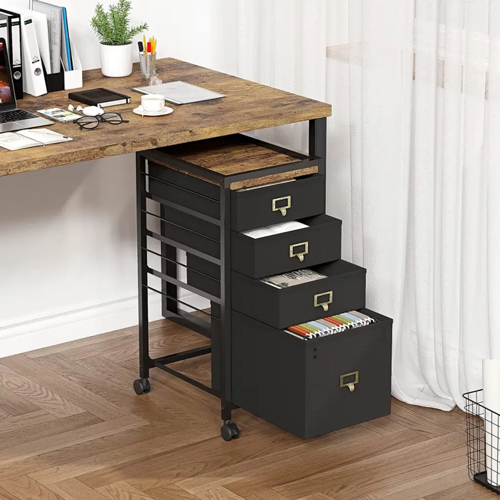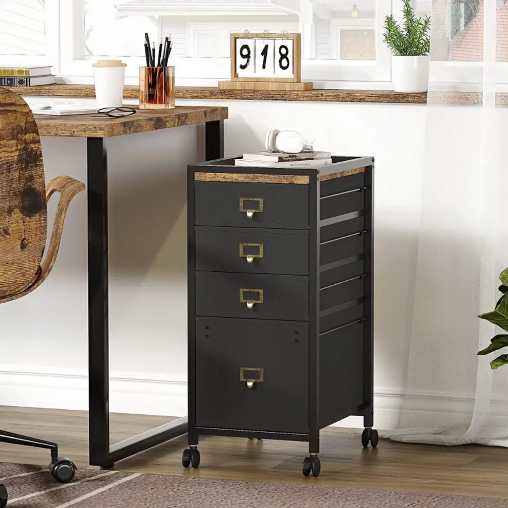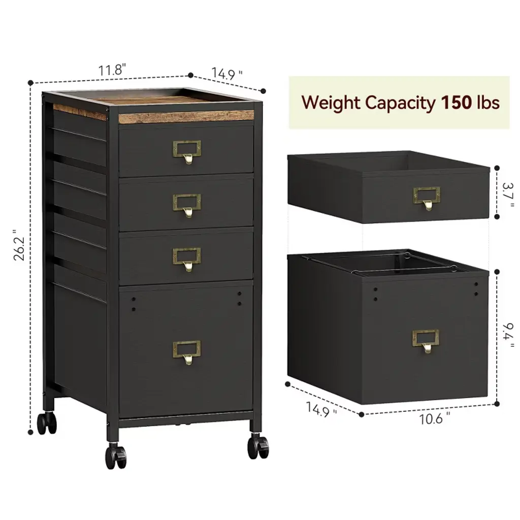 Tired of cluttered desks and misplaced documents? This 4-drawer file cabinet is your ultimate storage ally, designed to organize office supplies, files, and even printers neatly. Its rustic-modern finish blends seamlessly into any home office or study, while the compact size fits snugly under desks or in tight corners. The waterproof, scratch-resistant coating wipes clean in seconds, resisting spills, dust, and daily wear.