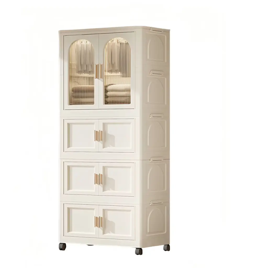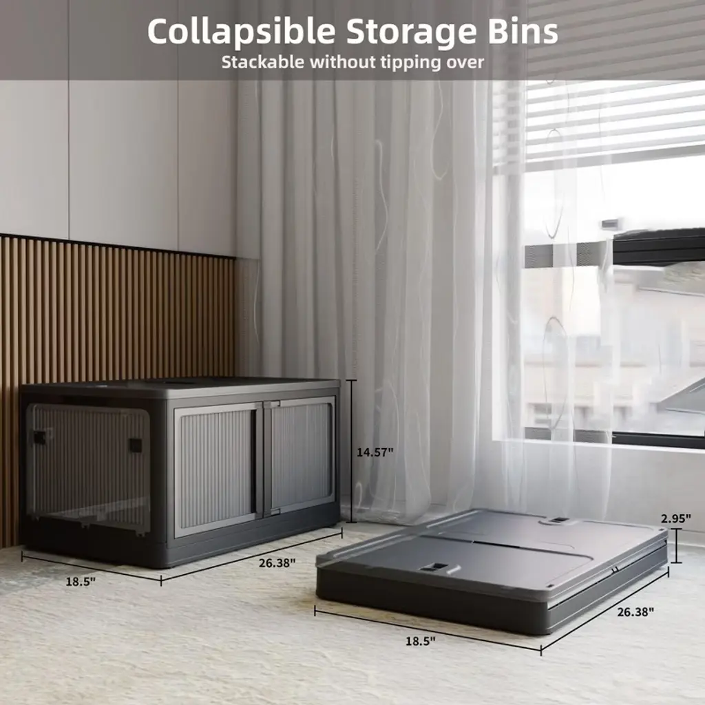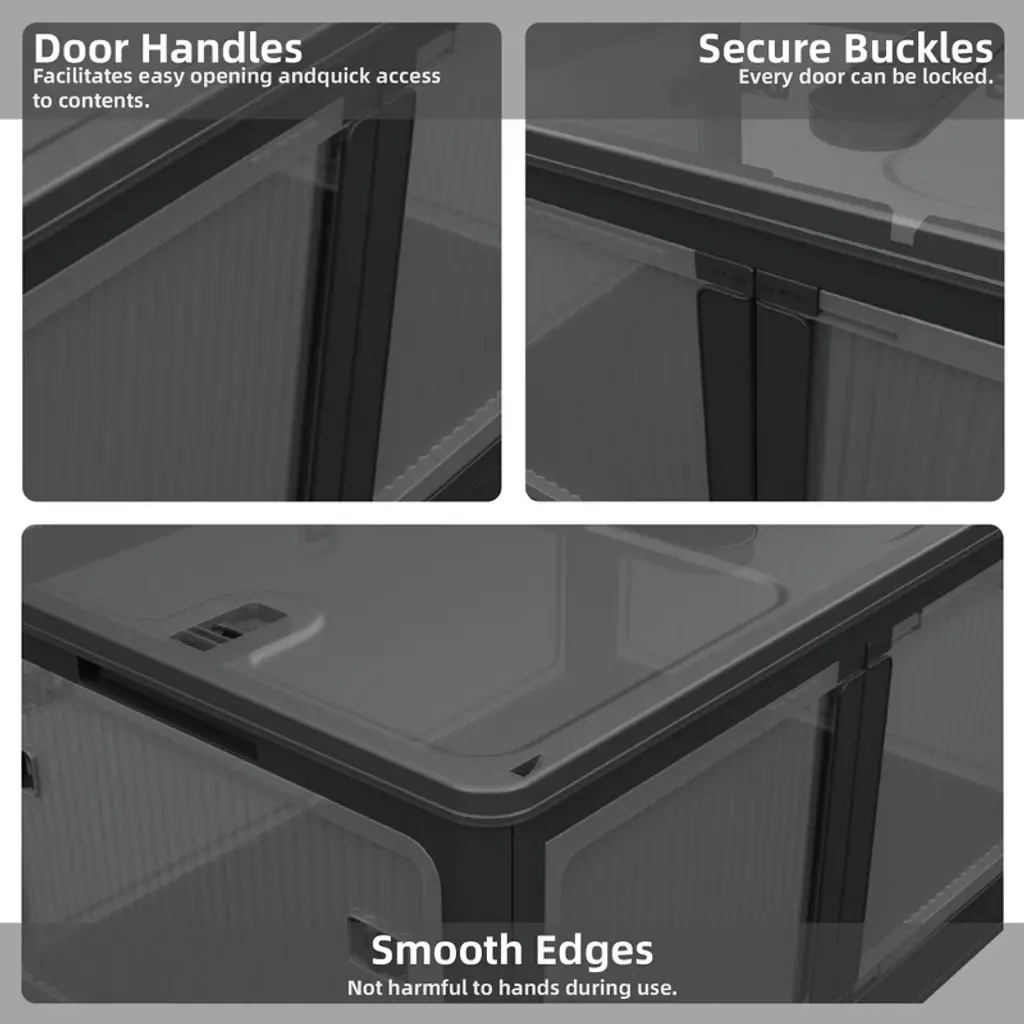 4-pack Transparent Stackable Storage Bins With 5 Doors To Open With Wheels, Folding Plastic Craft Containers Large Closet Organizers Box For Bedrooms