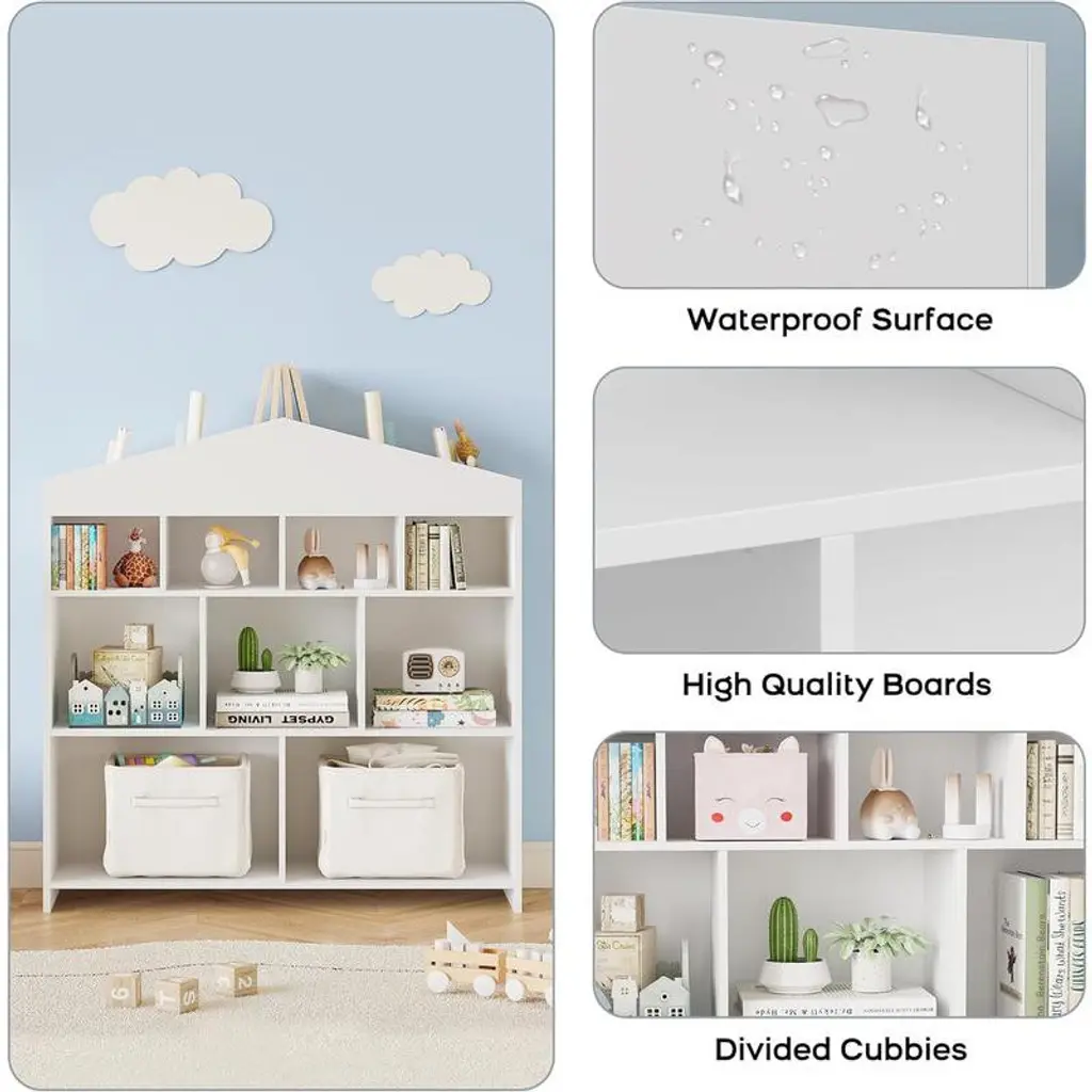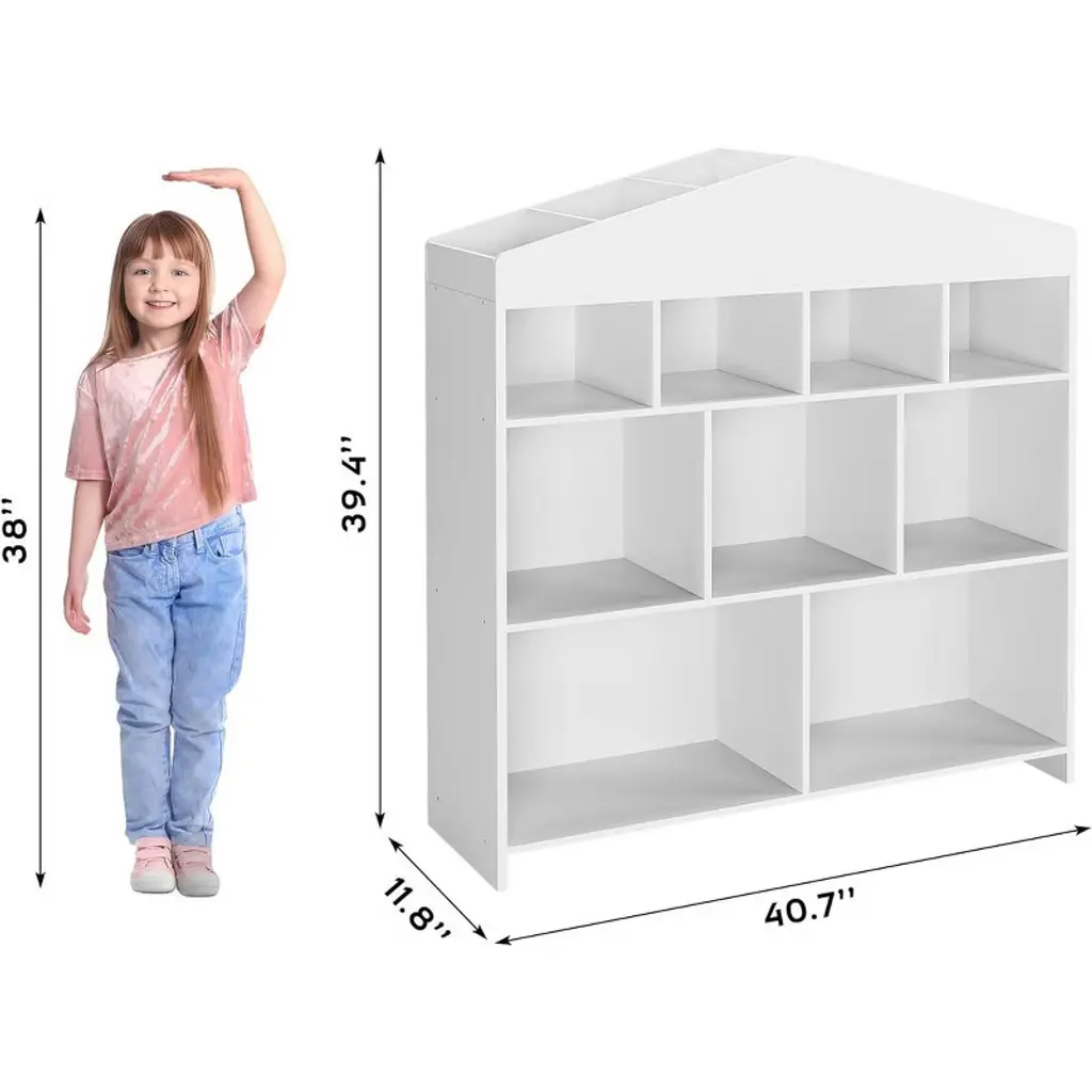 40.7''wide Kids Toy Organizer With 9-cubby Storage - Dollhouse Bookshelf For Playroom,nurser,white