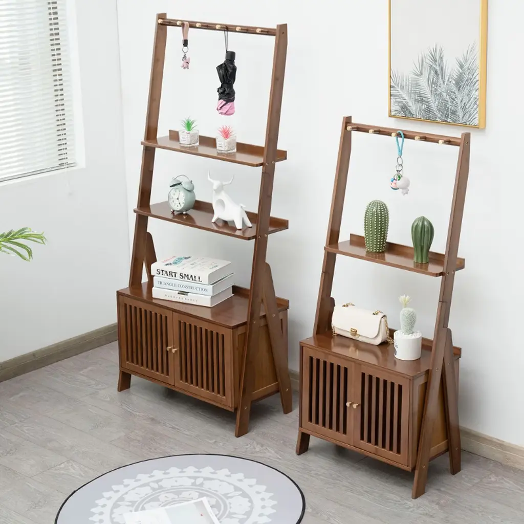 47''ladder Shelf, Bamboo Shelf, Open Display Shelf, With Cabinet, Ladder Bookshelf, Freestanding, Floor Standing Storage Shelf