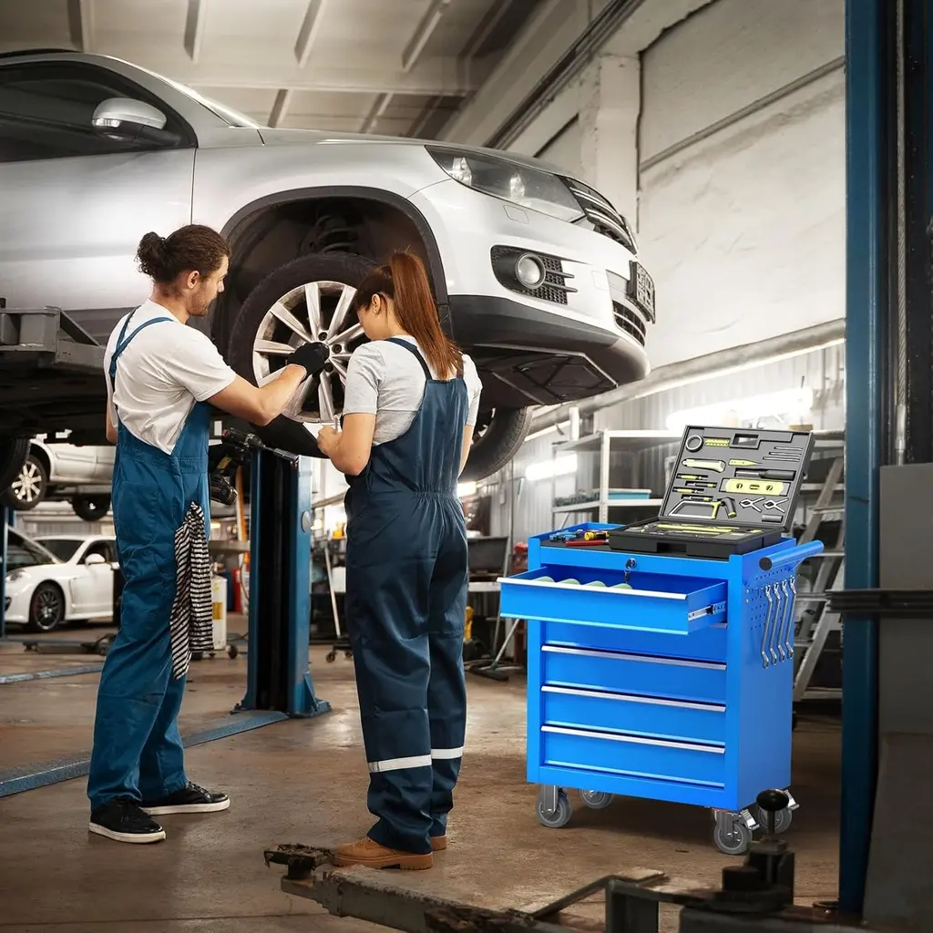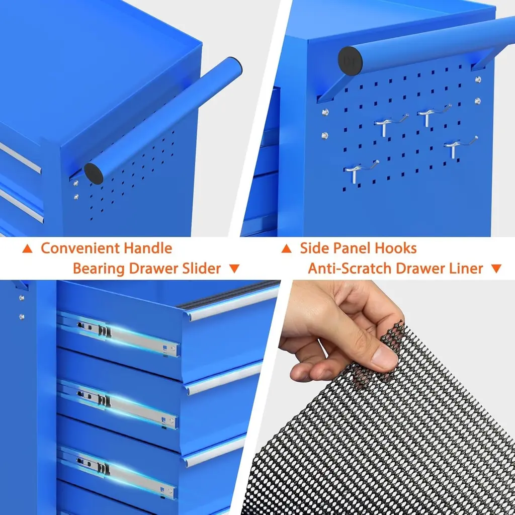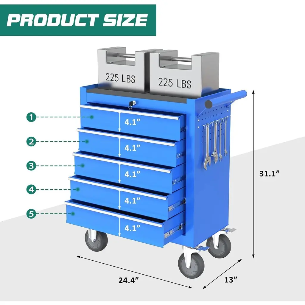 5-Drawer Rolling Tool Chest Storage Cabinet With Wheels - Blue