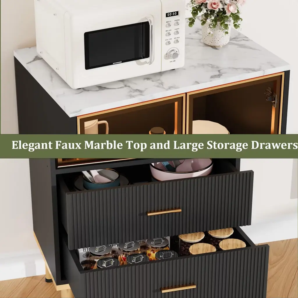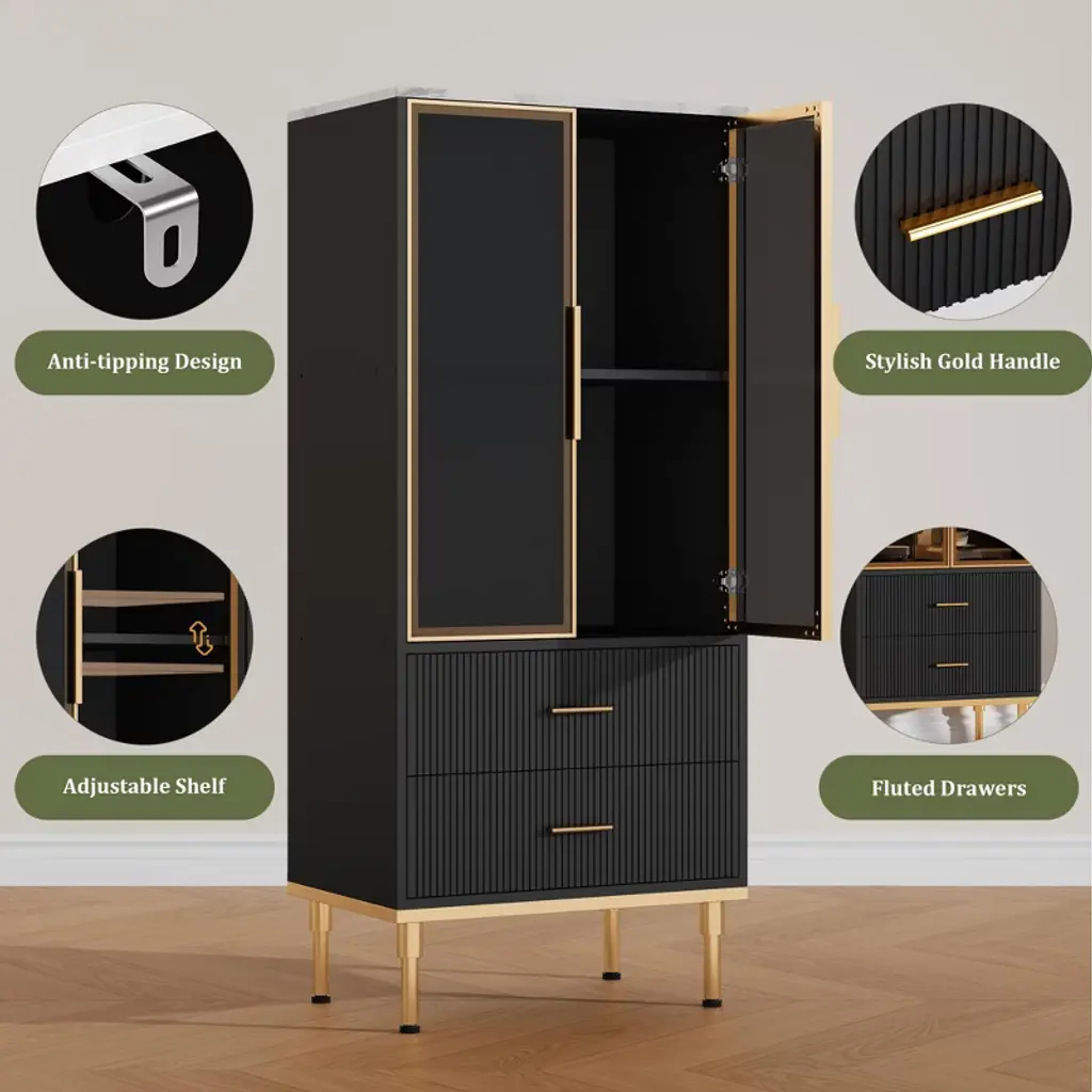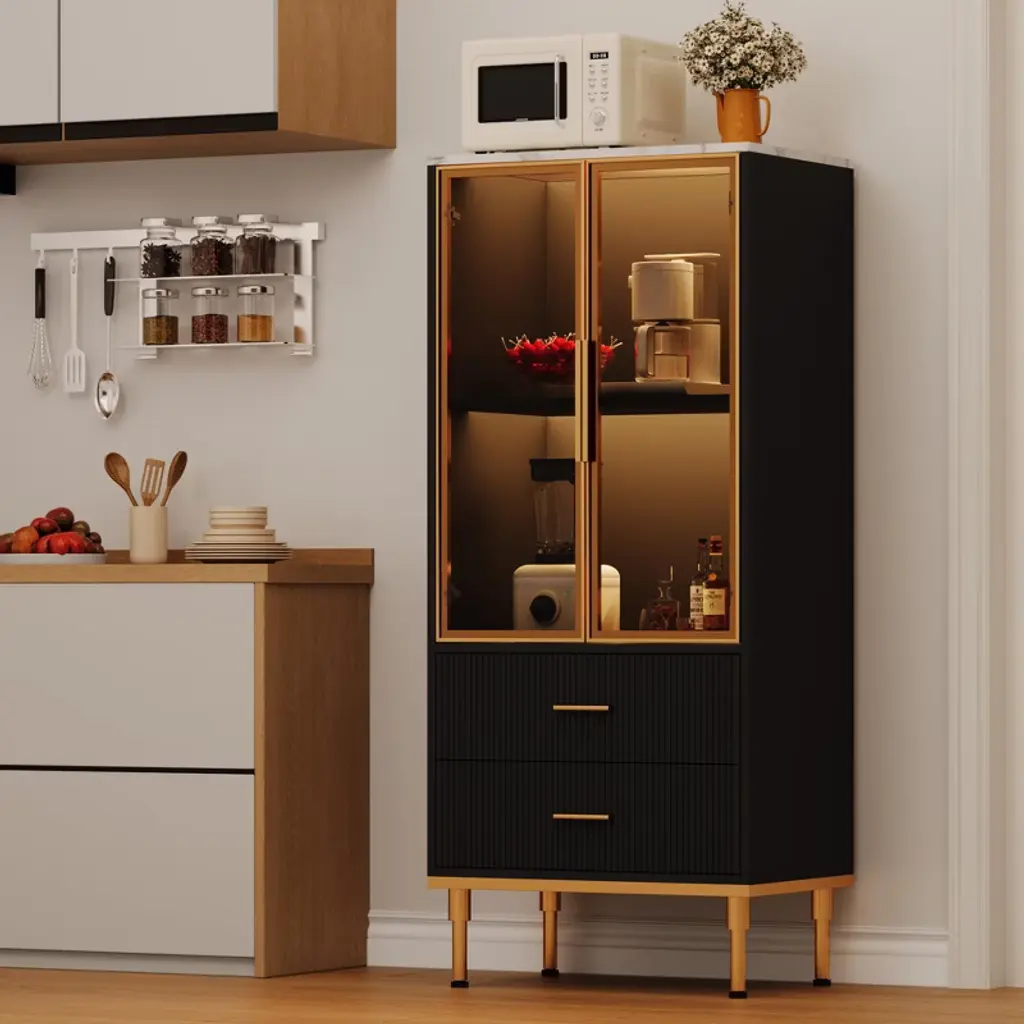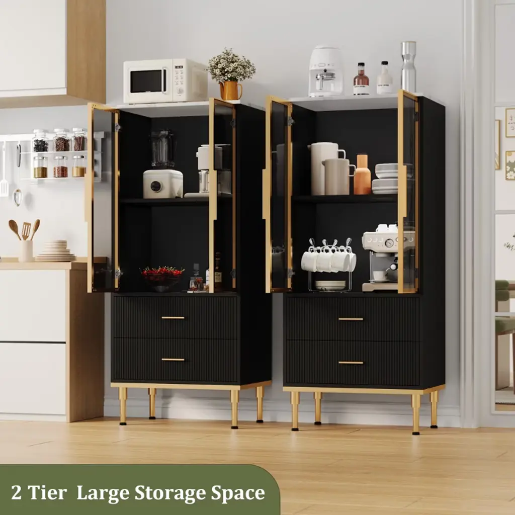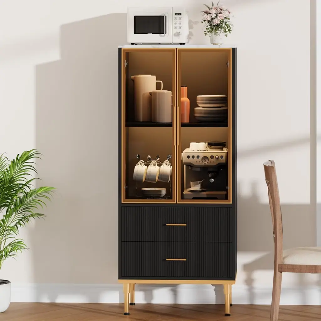 Elevate your home decor with this 54.8" Modern Display Storage Cabinet, designed to combine elegance and practicality. Featuring a stunning tea-colored glass door framed in gold alloy, this cabinet adds a sophisticated touch to any room. The fluted drawer panels and trapezoidal gold alloy feet further enhance its stylish appeal, making it a perfect centerpiece for your living room, office, or kitchen.