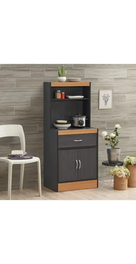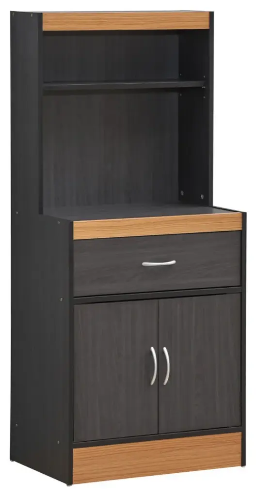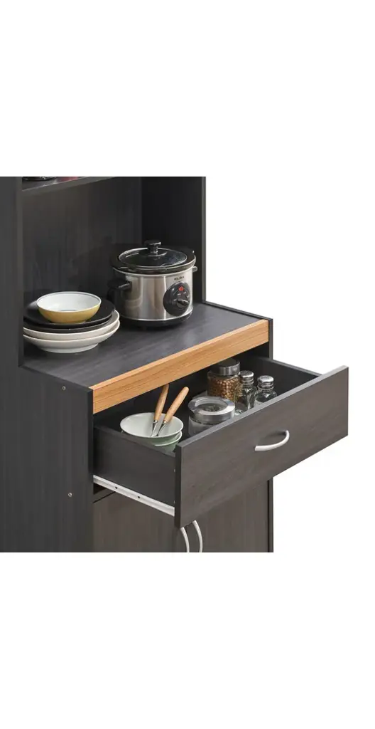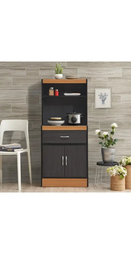 The Hodedah 54" Tall Wooden Kitchen Cabinet with Open Shelves, 1-Drawer and Bottom Enclosed Storage is the most simple yet versatile piece of furniture you can add to your home or office. Diligently designed with an open shelf on the top to house spices and easy to grab condiments. The center spot is perfect for a microwave, toaster oven or coffee machine. We have also equipped this piece with a drawer that can be used to store utensils, coffee pods and any small items. In addition the storage on the bottom can be used to store away those rarely used items keeping kitchen clutter packed away. This kitchen cabinet is available in multiple finishes and you can choose the one that blends with your existing interiors.