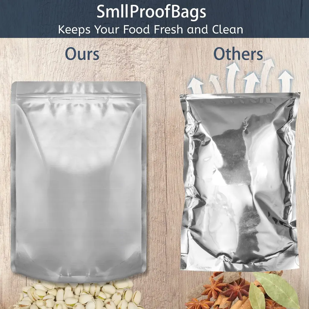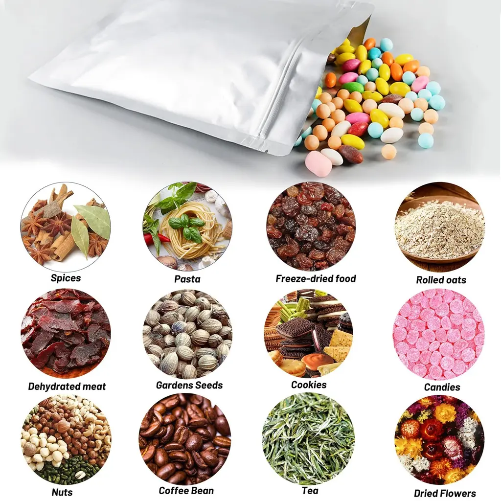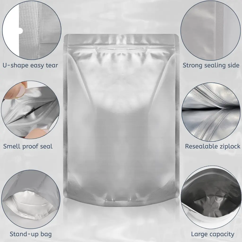 60 Pack Mylar Bags For Food Storage, Resealable Ziplock Bags For Candy With Ziplock - Silver