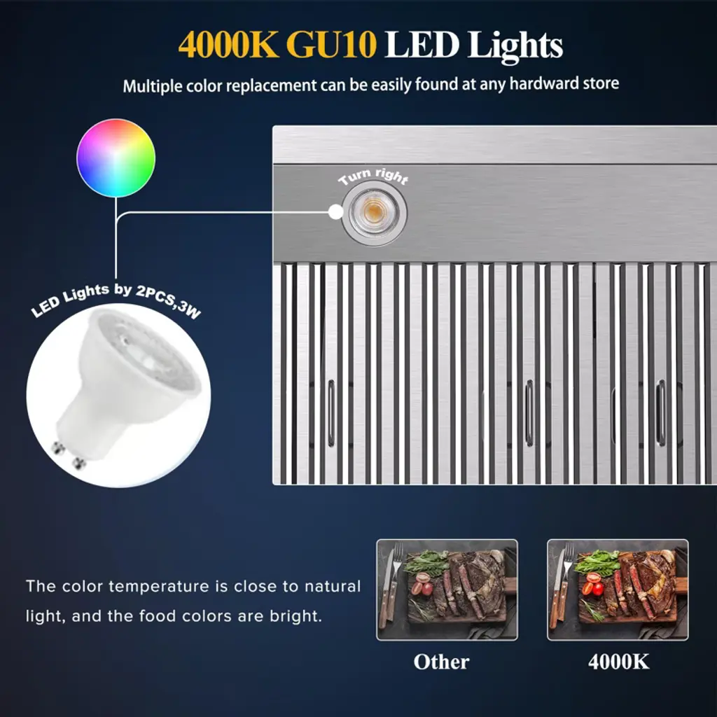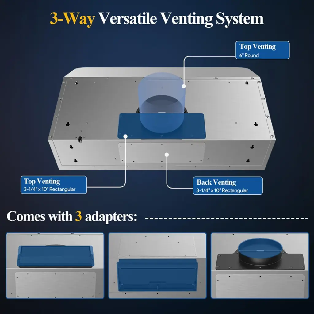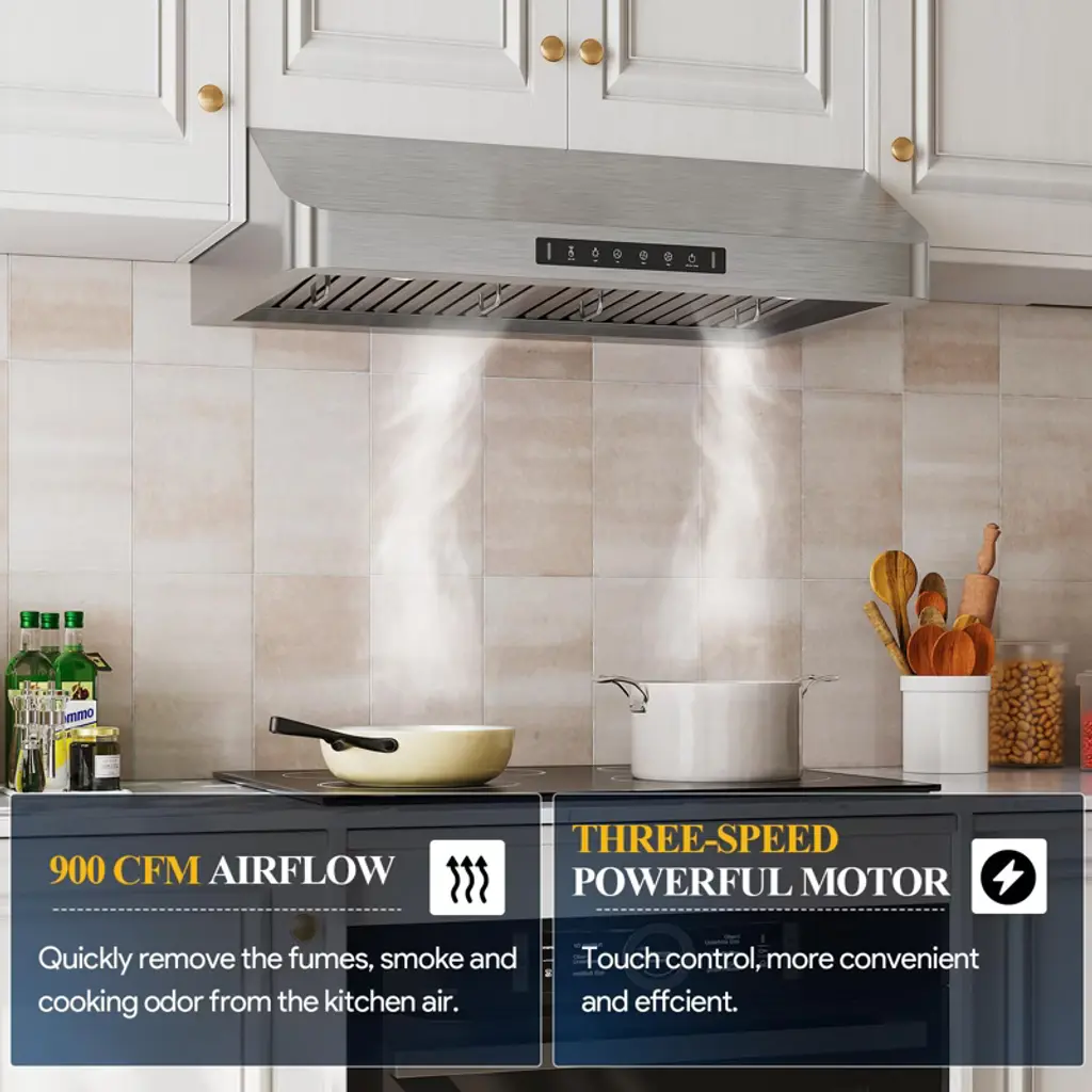 Transform your kitchen with this high-efficiency range hood, engineered to deliver powerful suction, quiet operation, and easy-to-use features for an enhanced cooking experience. Built to capture smoke, grease, and odors, it helps maintain a fresh and clean kitchen environment while improving your cooking atmosphere. Whether you're searing, simmering, or boiling, this range hood ensures your kitchen stays comfortable and free from unwanted odors.