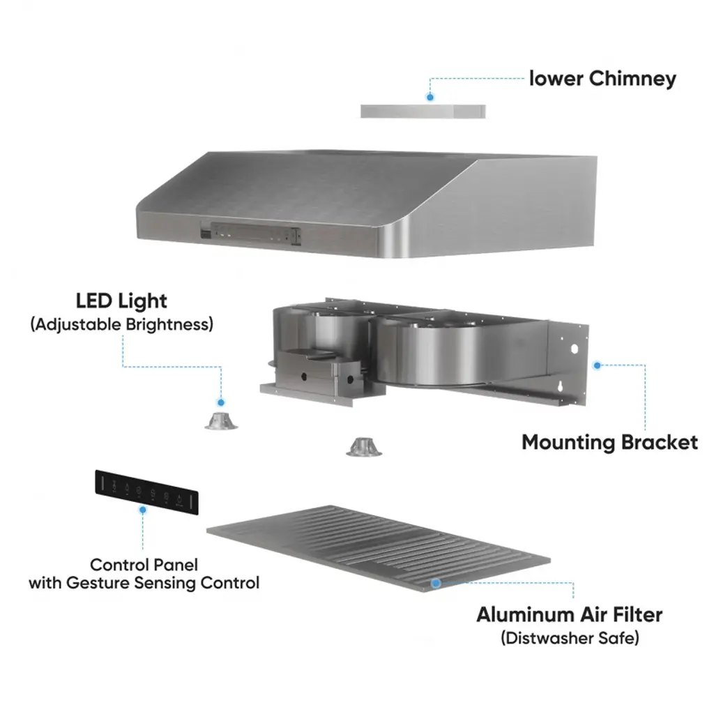 Transform your kitchen with this high-efficiency range hood, engineered to deliver powerful suction, quiet operation, and easy-to-use features for an enhanced cooking experience. Built to capture smoke, grease, and odors, it helps maintain a fresh and clean kitchen environment while improving your cooking atmosphere. Whether you're searing, simmering, or boiling, this range hood ensures your kitchen stays comfortable and free from unwanted odors.