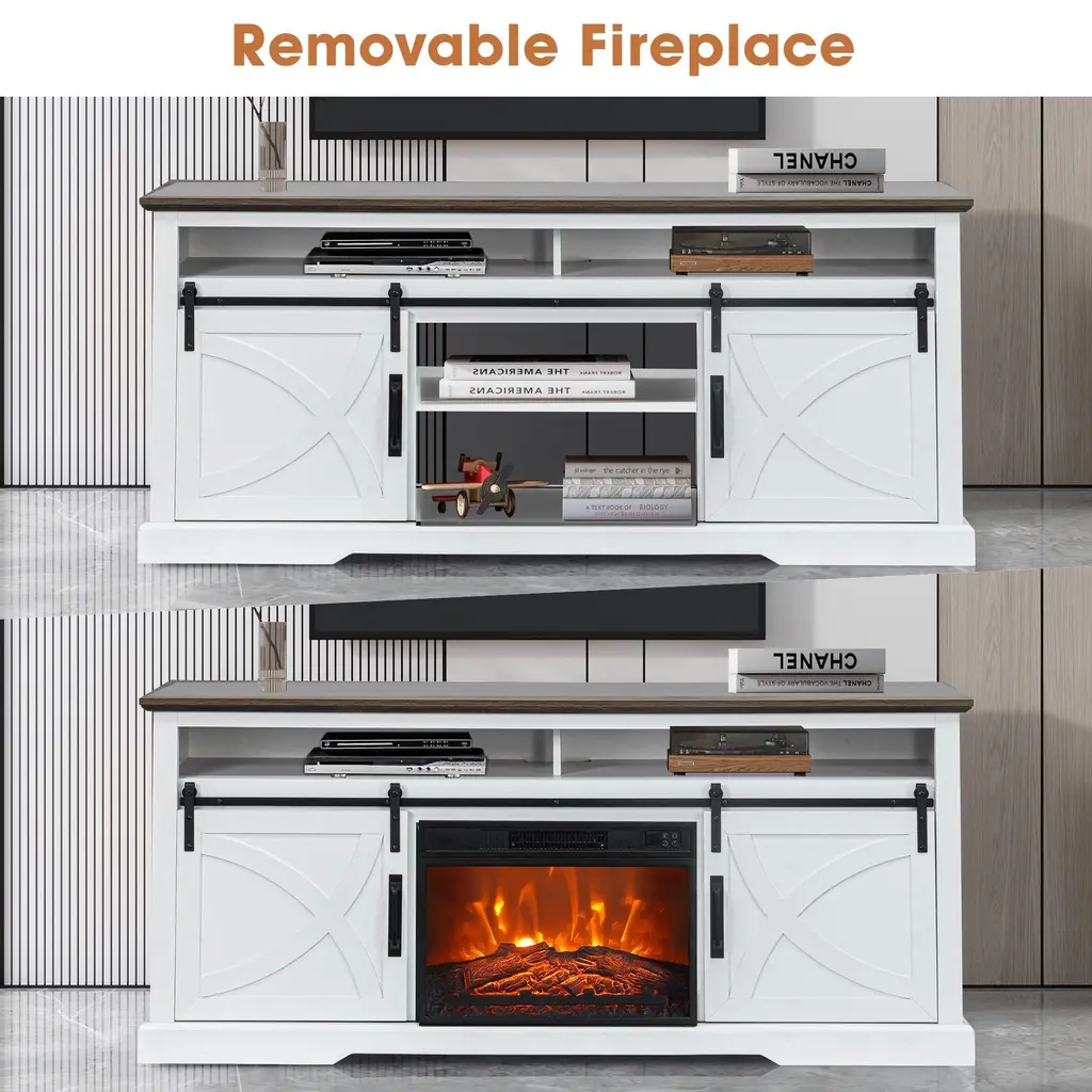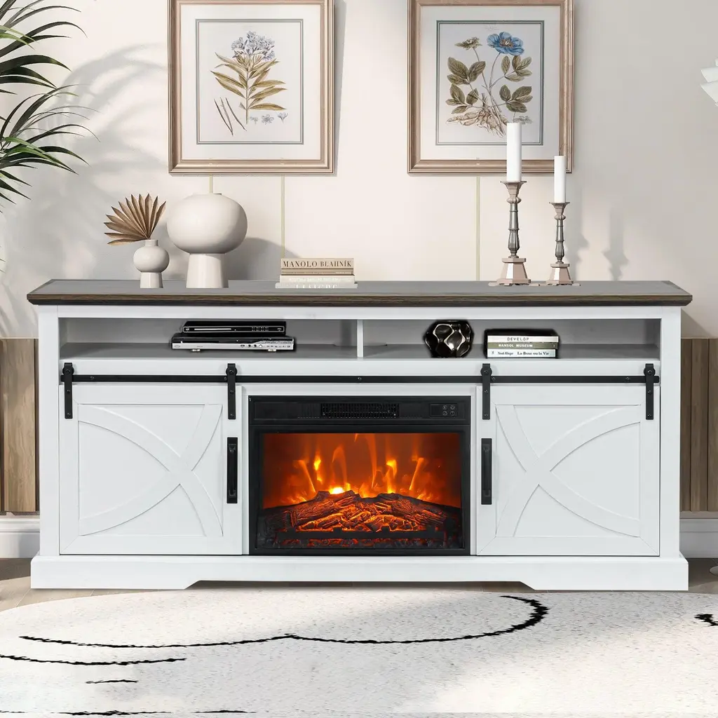 Transform your home into an evergreen spring paradise with this charming 68" Farmhouse Fireplace TV Stand. Not only does this TV stand double as a multi-functional media console, but it also injects country charm into your living space. Moreover, it offers ample storage with two cabinets and two open areas, providing a convenient solution for stowing away miscellaneous items. You can therefore easily organize CDs, DVDs, game consoles, and decorative items. Made of sturdy and durable wood, this TV stand is not only practical but also aesthetically pleasing. It is available in three elegant colors: white, brown, and gray. Hence, you have a variety of options to suit your decor.