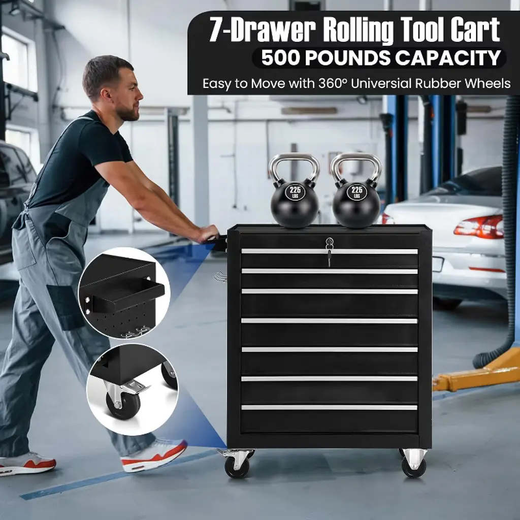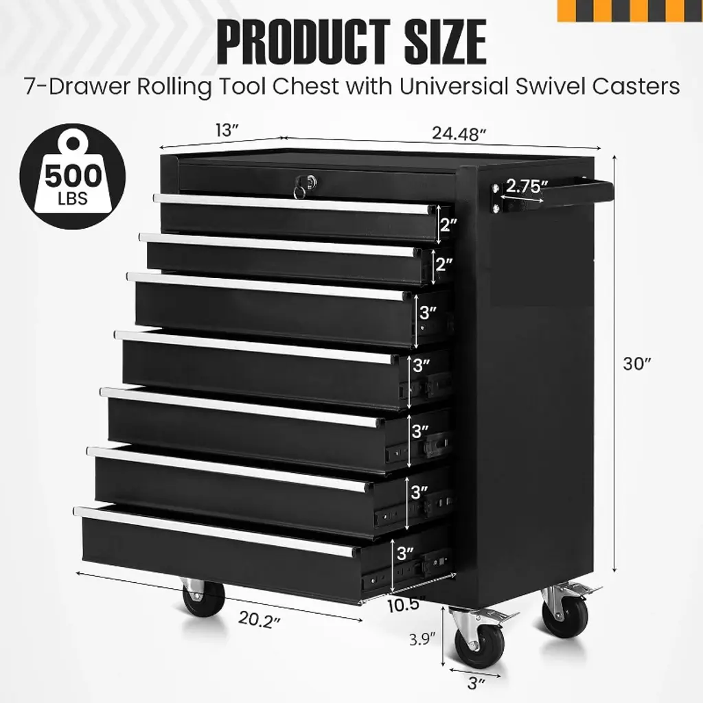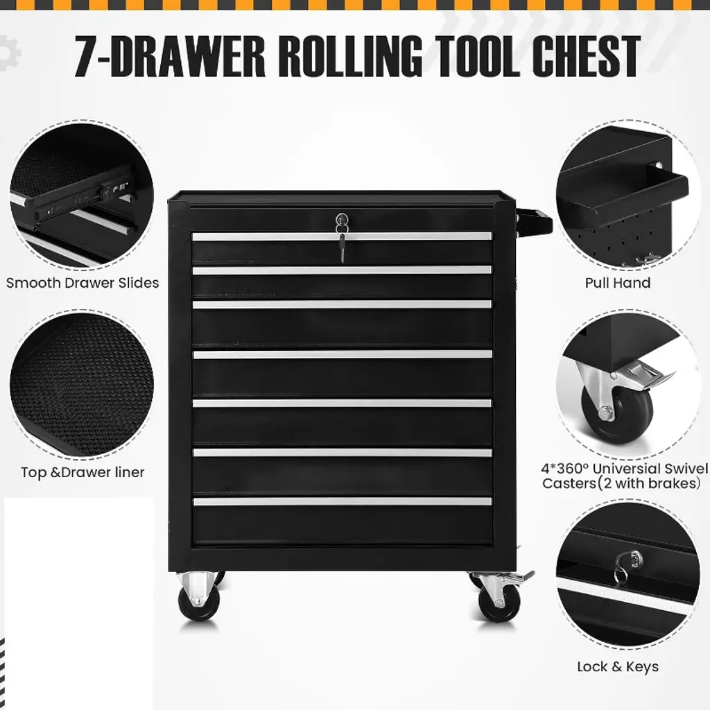 7-drawer Rolling Tool Chest, Tool Cabinet On Wheels With Keyed Locking System And Drawer Liners, Black
