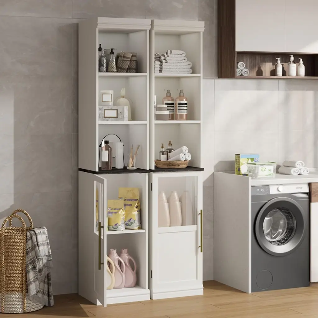 70" Bathroom Storage Cabinet, Tall Narrow Storage Cabinet With Open Shelves Boards Narrow For Small Spaces, Bathroom, Laundry Room