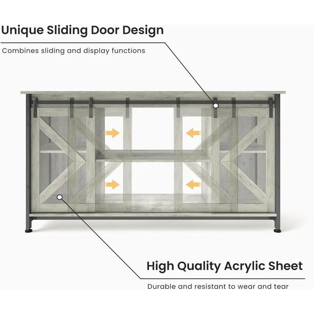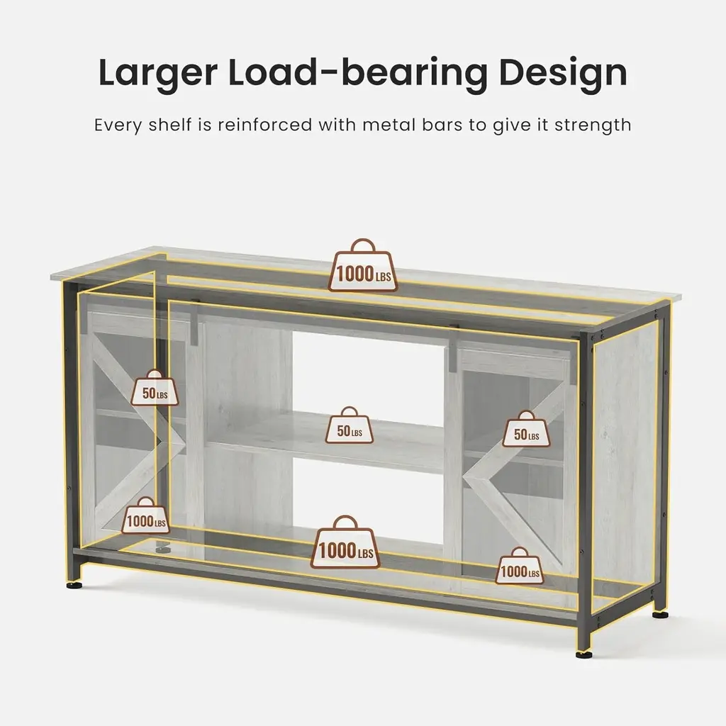 We have upgraded the traditional fish tank stand and designed one with a cabinet, which can improve the utilization of space and make fish farming easier. Its bearing capacity has also been upgraded. The whole is supported by a metal frame. The maximum bearing capacity is as high as 1000LBS, which can accommodate UP to 90-gallon fish tanks.Fish tank table is stylish and practical, not only can match a variety of decoration styles but also can embellish the space, making it more warm.【Greater Load Bearing】 A 4cm thick heavy-duty steel frame is used as the load-bearing main body, and an MDF board is used as the supporting tabletop. This ensures that the aquarium stand as a whole is more robust, support a maximum load of up to 1,000 lbs【Accommodates More Aquariums】It fits multiple sizes of aquariums or terrariums, up to 90 gallons; the top of the fish tank rack can accommodate multiple fish tanks of different capacities at the same time; the bottom rack holds a small aquarium【Convenient Fish Tank Stand with Storage】The spacious storage cabinet, with a capacity of up to 100 lbs, is perfect for storing fish food, nets, gravel cleaners, and water conditioners; this design maximizes space and keeps the aquarium area tidy【Sliding Door Design】The combination of high-quality wood and high-quality acrylic panels allows the cabinet door to have both sliding and display functions; it is not easy to wear【Stylish and Modern】The reptile tank stand is designed with imitation wood; the color is fashionable and versatile; it is not only practical but also matches a variety of home decoration styles; brings convenience and joy to your life