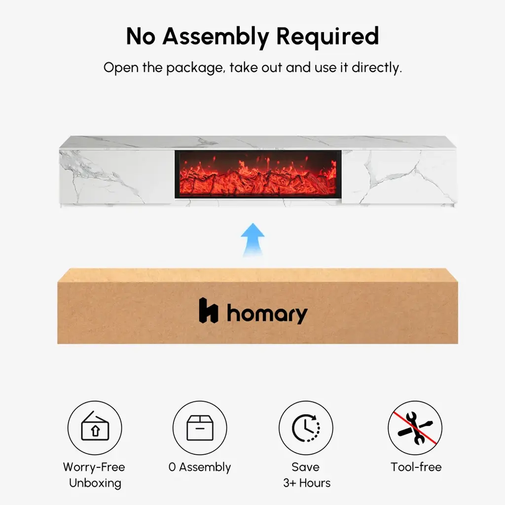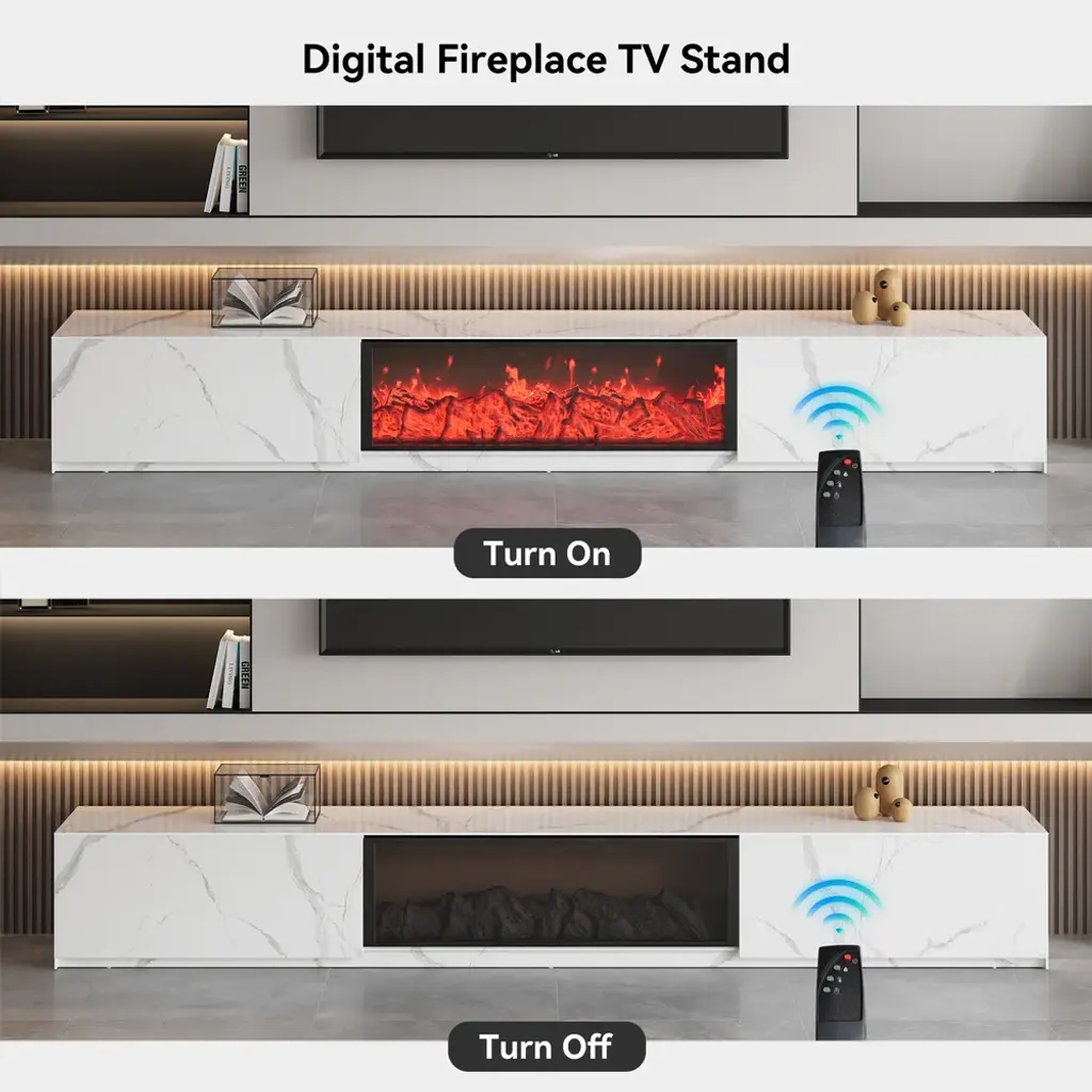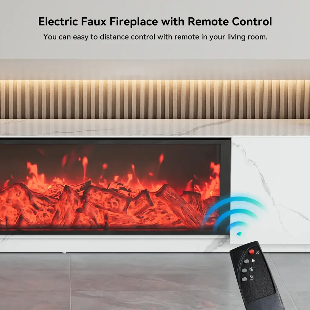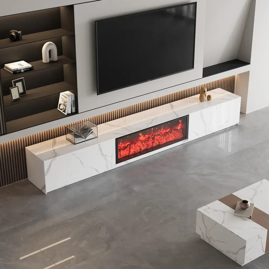 This TV cabinet is made of high-quality marble veneer and marble veneer plates, which are durable and stylish. The electric fireplace has easy control, with the capacity to deliver far more realistic 3D flame effects, glowing logs, and embers to create coziness in the atmosphere. This comes with ample storage space, making it the best choice for decorating the living room and practicality.