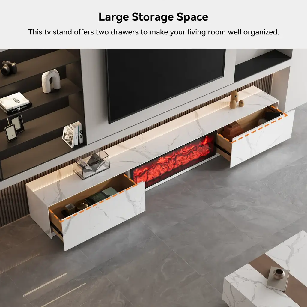 79" Sintered Stone Electric Fireplace Tv Stand With 2 Drawers