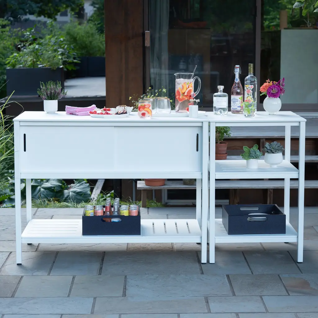 Effortlessly customize your outdoor kitchen or storage space with the A La Carte Square Open Modular Storage from Loll Designs. Its shelves are perfect for common appliances and can be configured with other A La Carte Cabinets for additional storage or kitchen prep space. The adjustable feet and non-porous HDPE construction make it versatile and easy to clean. Highlights