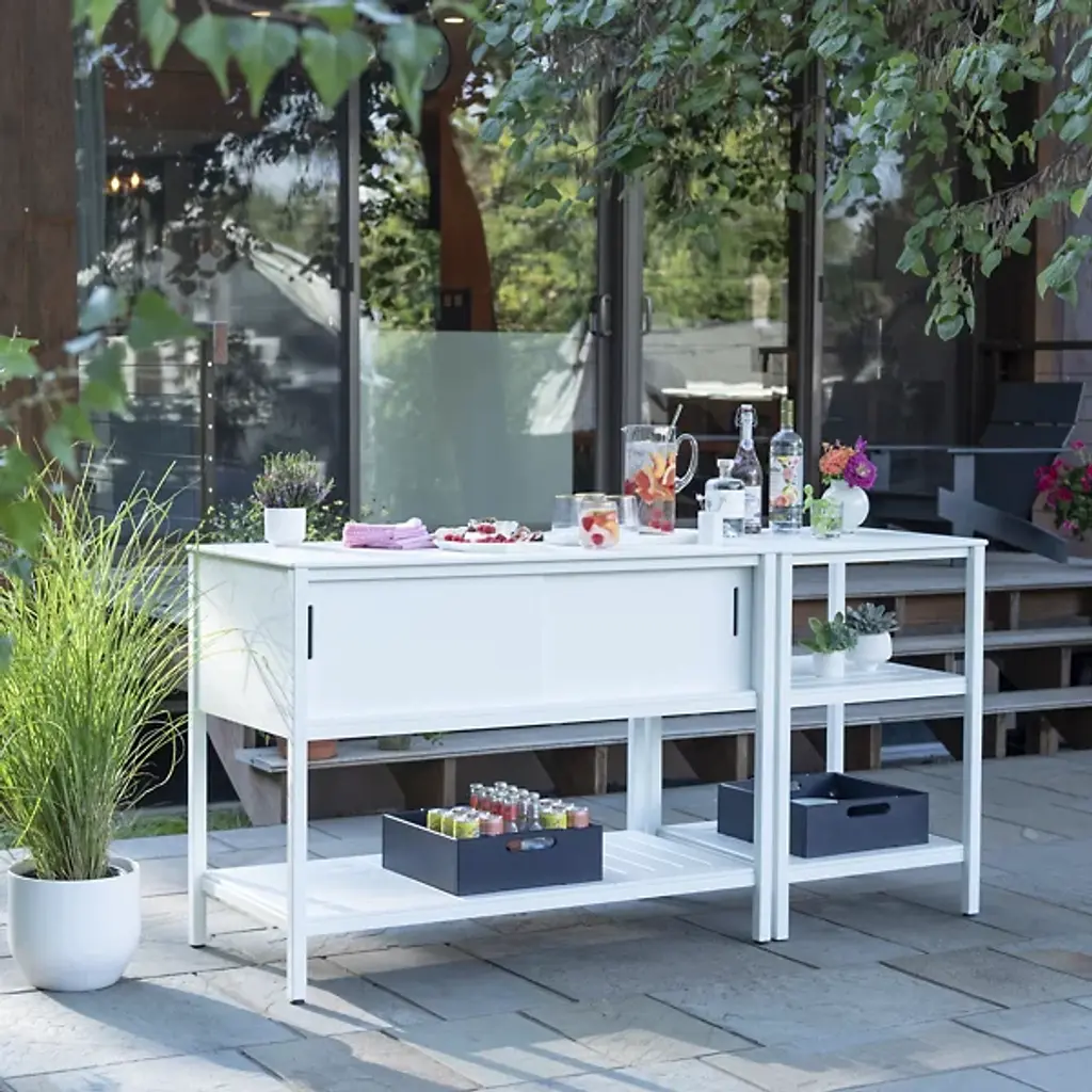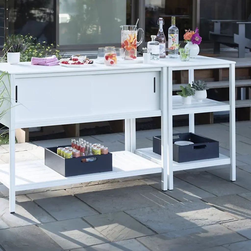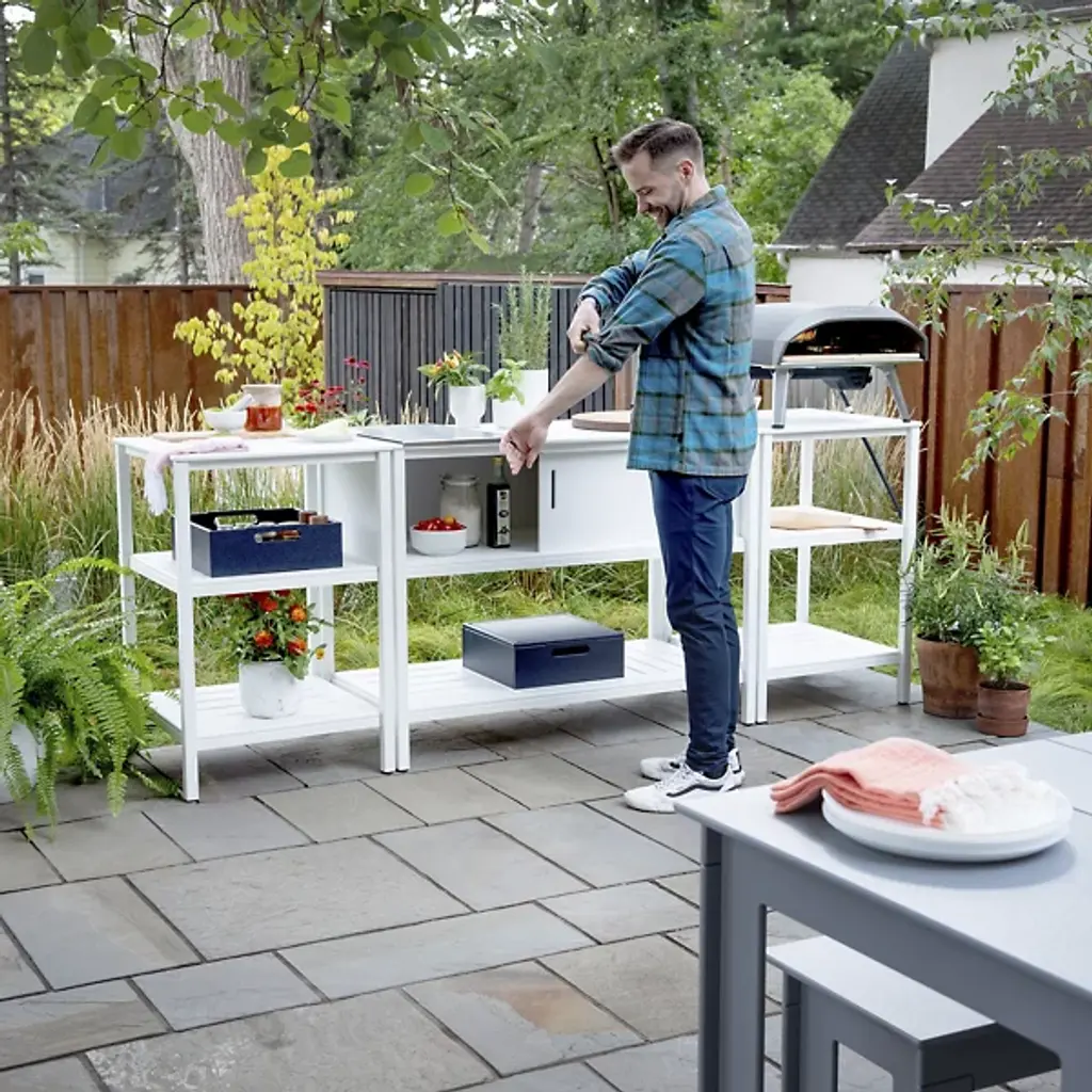 The A La Carte Square Open Outdoor Cubby from Loll Designs is an ideal modular storage solution for your outdoor kitchen. It features shelves designed to accommodate most common appliances. Place it next to a grill for convenient meal prep, or pair it with other A La Carte Cabinets to create ample storage or additional kitchen prep space. Its adjustable feet ensure stability on uneven surfaces, making customization effortless.
