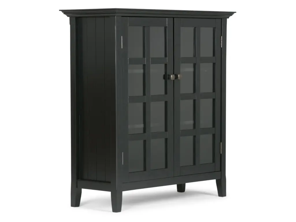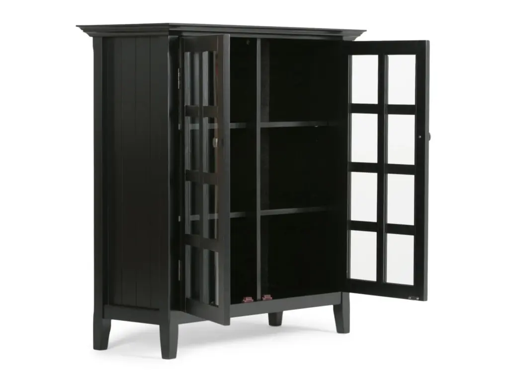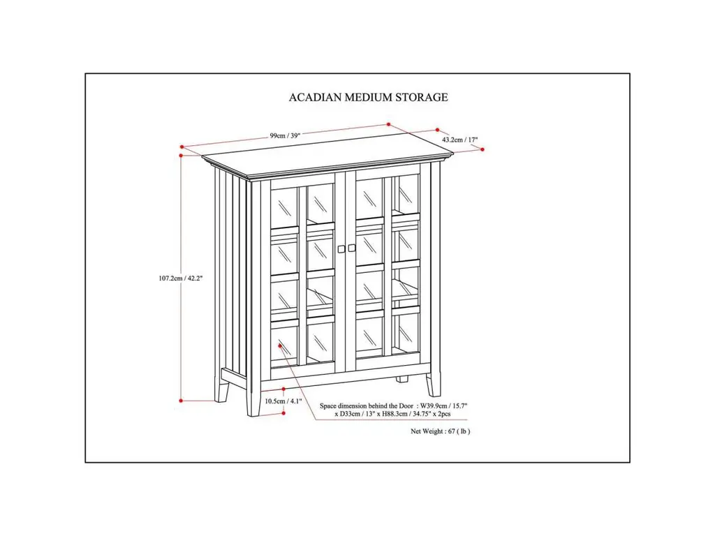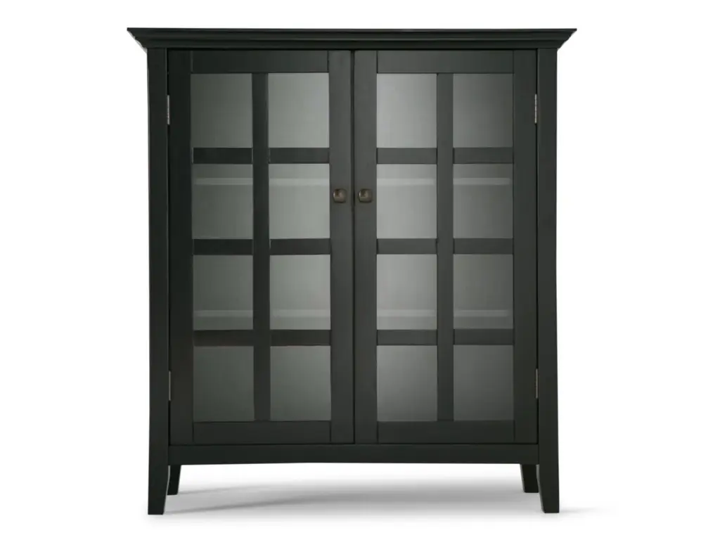 You like to be neat and tidy...that's good, so do we. It is for this reason we designed the Acadian Medium Storage Cabinet. Two tempered glass doors open to four adjustable shelves allowing you to reconfigure the layout to suit your needs. Display your fine china, decorative accents or even movies on dedicated display space for a clean, distinctive look.; Efforts are made to reproduce accurate colors, variations in color may occur due to computer monitor and photography; At Simpli Home we believe in creating excellent, high quality products made from the finest materials at an affordable price. Every one of our products come with a 1-year warranty and easy returns if you are not satisfied