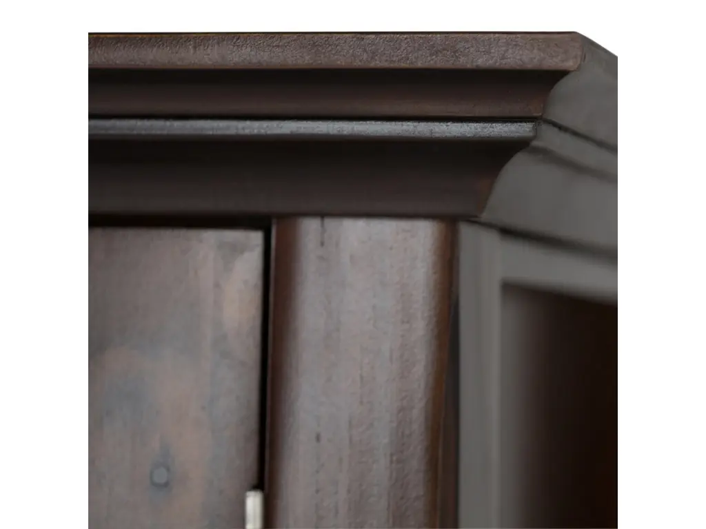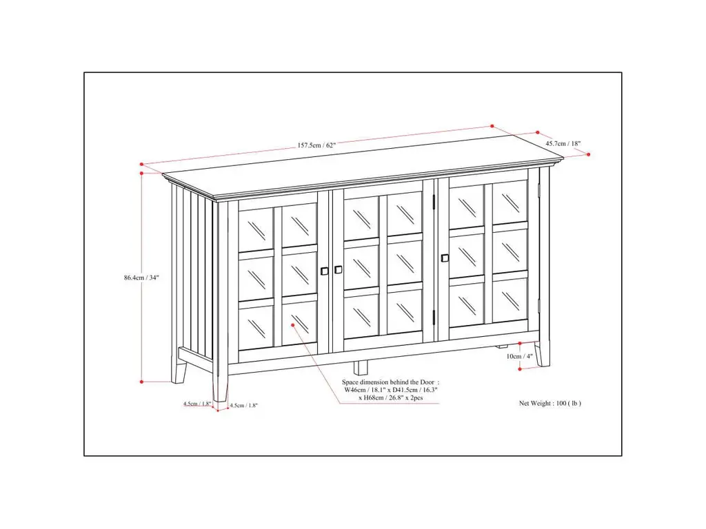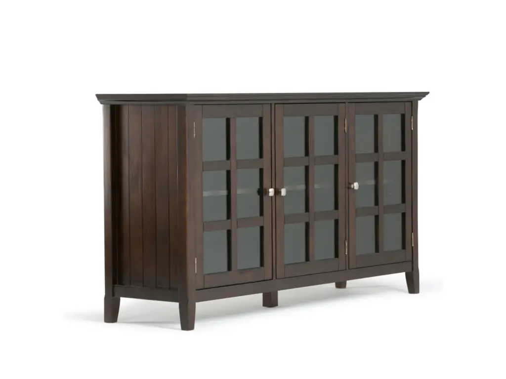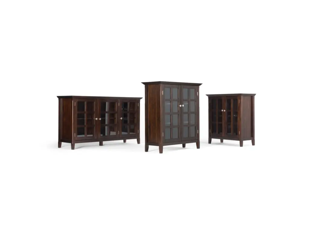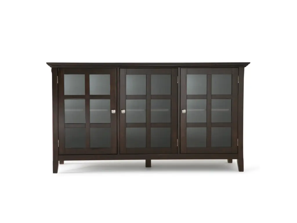 You want to make a grand statement and Acadian Wide Storage Cabinet will do just that. Three framed tempered glass doors open to three adjustable shelves allowing you to reconfigure the layout to suit your needs. Display your fine china, decorative accents or even movies on dedicated display space for a clean, distinctive look.; Efforts are made to reproduce accurate colors, variations in color may occur due to computer monitor and photography; At Simpli Home we believe in creating excellent, high quality products made from the finest materials at an affordable price. Every one of our products come with a 1-year warranty and easy returns if you are not satisfied
