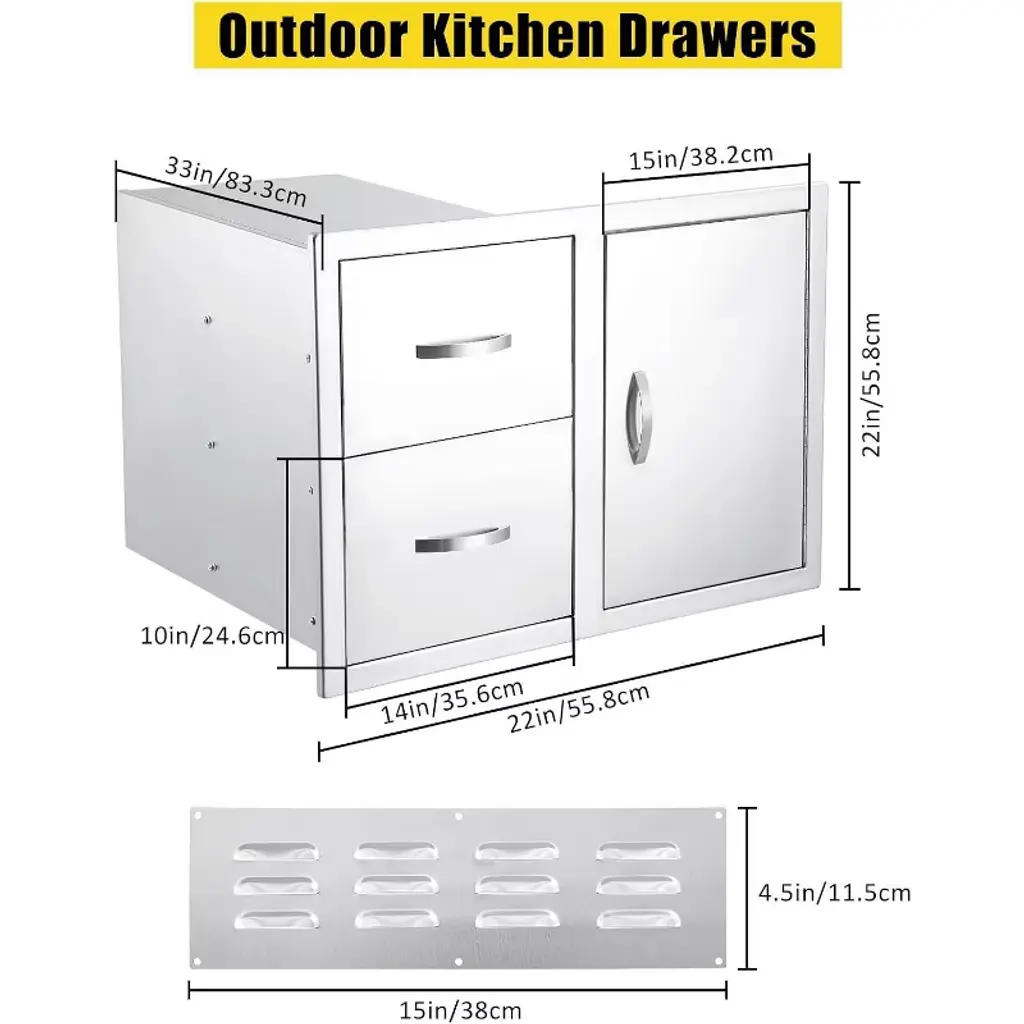 The Acekool outdoor storage cabinet brings smart organization to backyard cooking spaces. Its three-drawer system keeps grilling tools accessible while protecting them from the elements. Constructed from rust-resistant steel, this unit features smooth drawer operation and a built-in paper towel rack. The sealed design prevents moisture damage to stored items. Measuring 33"W x 22"H x 22"D externally, it fits standard outdoor kitchen cutouts. The 31" interior width accommodates most BBQ accessories while maintaining a sleek profile.