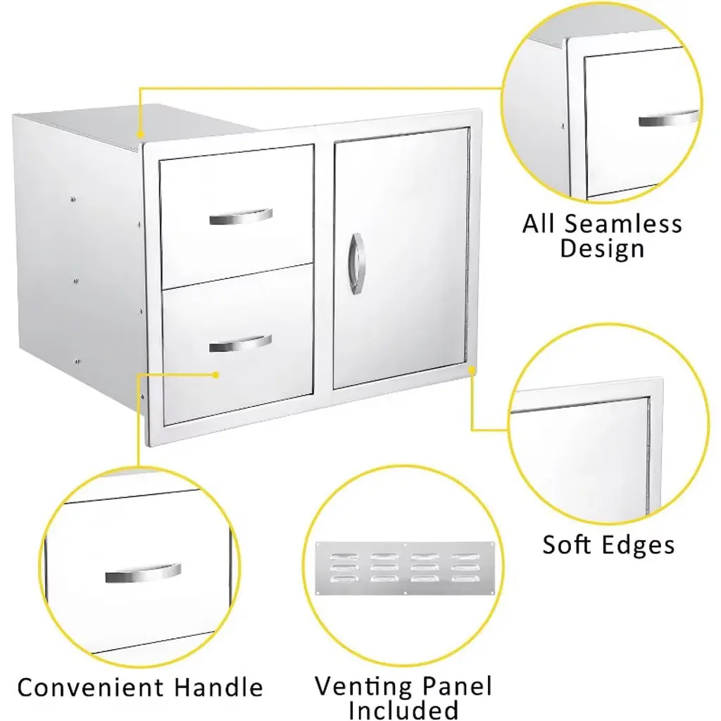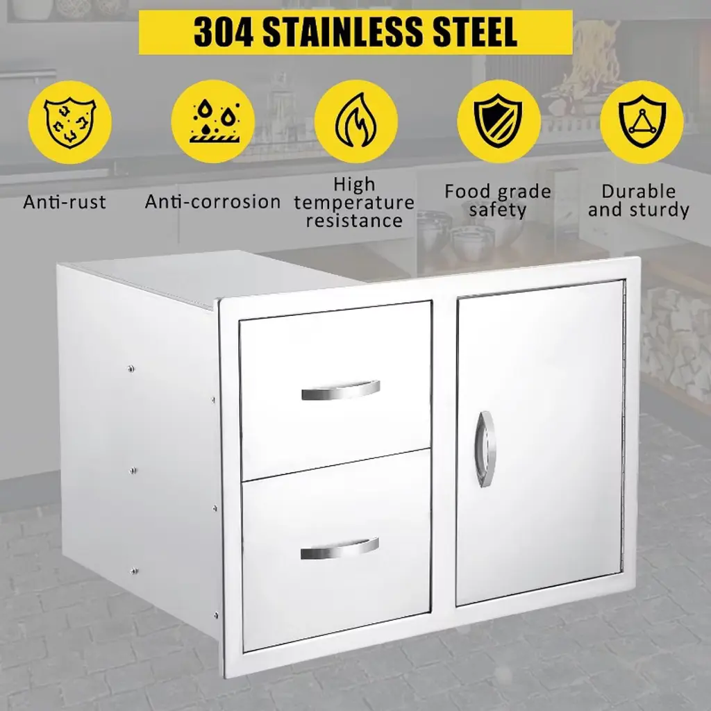 Acekool 33" Outdoor Kitchen Storage - Stainless Steel Drawer Combo With Paper Towel Holder For Bbq Stations