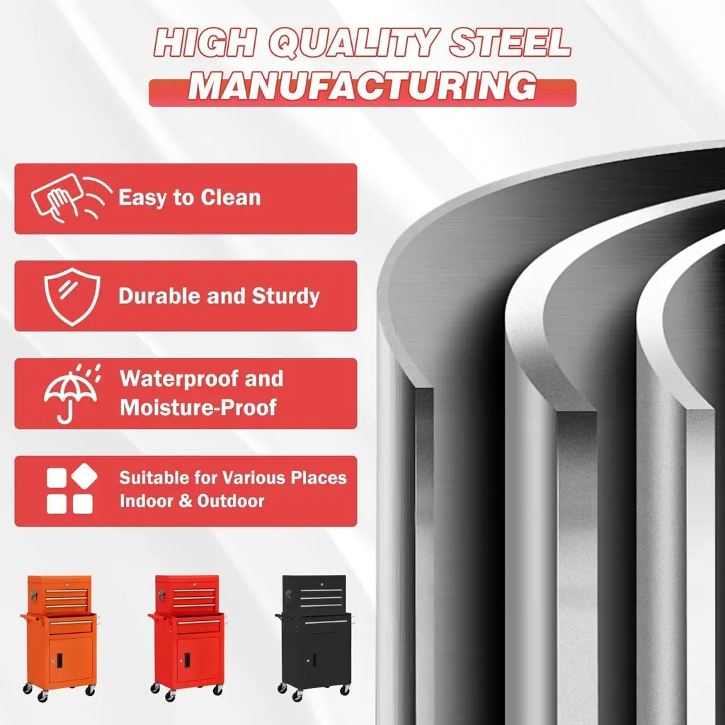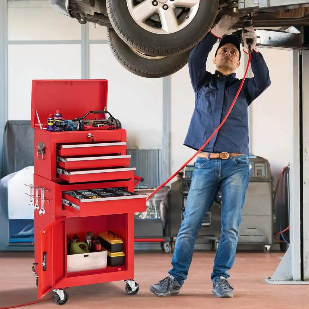 The ultimate organizer for your garage or workshop! This heavy-duty tool storage solution features multiple drawers and compartments, providing ample space for all your tools and equipment. Designed with mobility in mind, it comes equipped with sturdy wheels, allowing you to effortlessly move your tools wherever they're needed. Crafted for durability, our tool chest is built to last with tough materials that can withstand the demands of daily use. Keep your workspace tidy and your tools easily accessible with this versatile rolling tool chest. Perfect for DIY enthusiasts and professionals alike, it's your go-to solution for efficient organization. Upgrade your workshop today with our premium Rolling Tool Chest & Cabinets!Item Features: