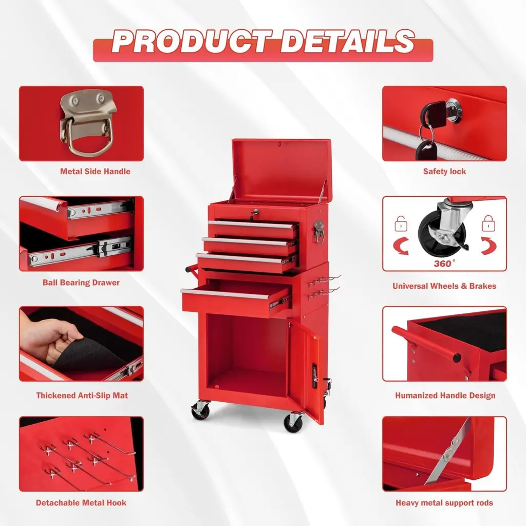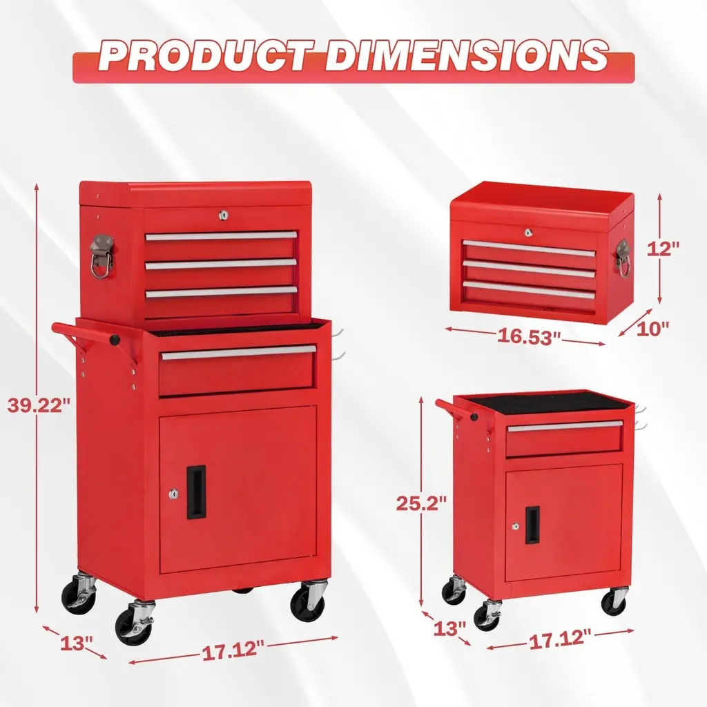 Aecojoy Tool Chests & Cabinets Detachable Metal W/ Wheels - Red