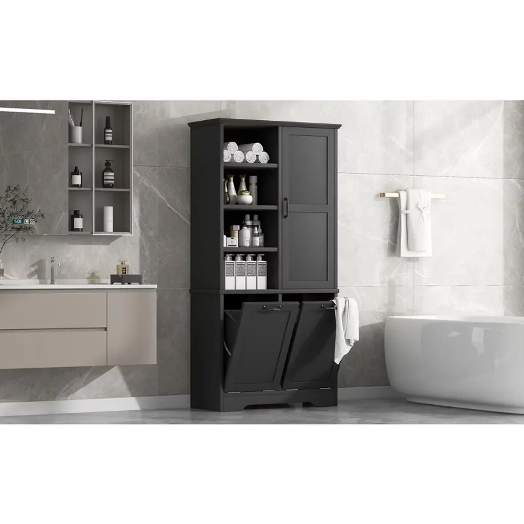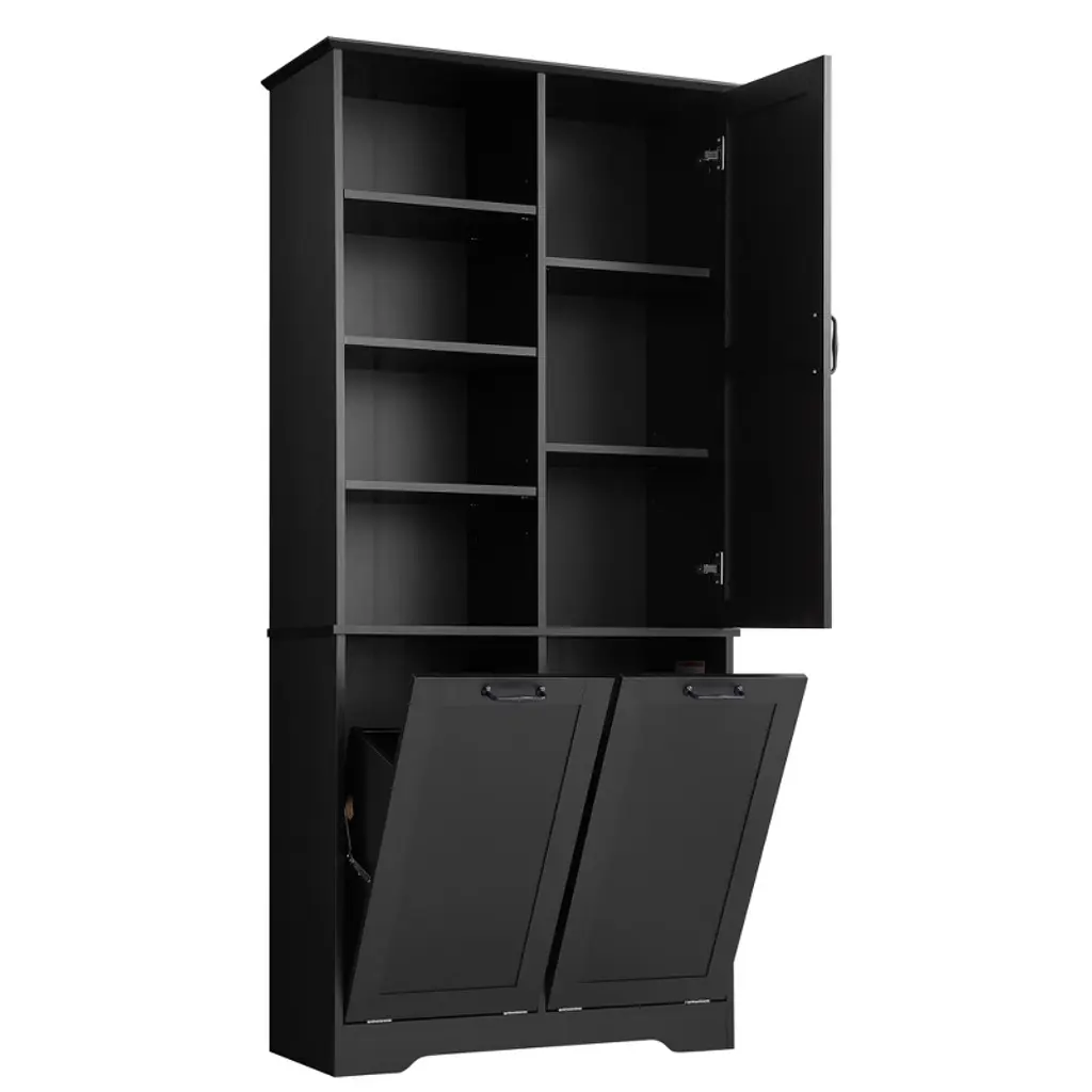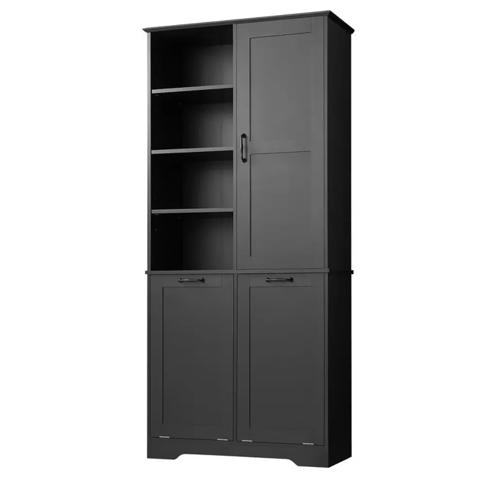 Akoasm 68 In. H Black Bathroom Storage Cabinet With Doors And Drawers