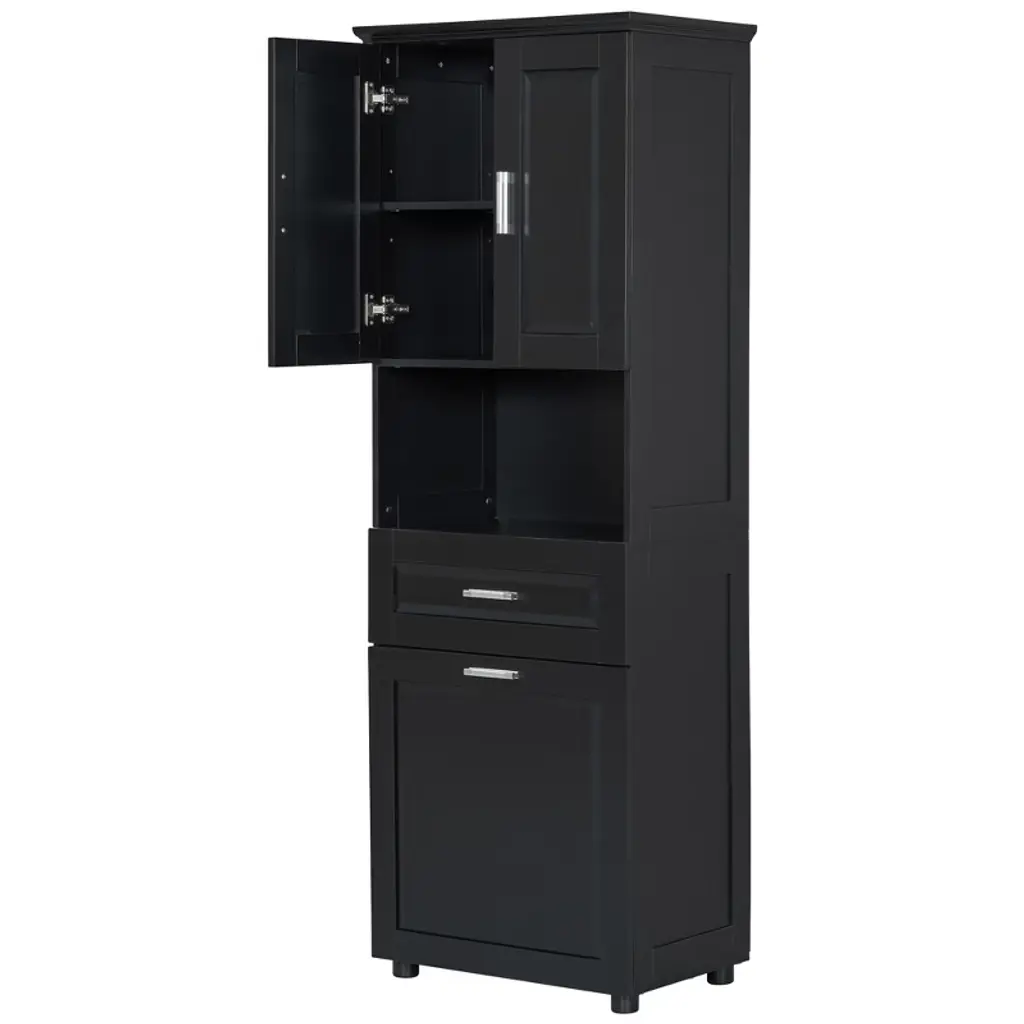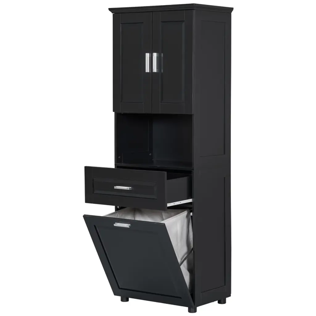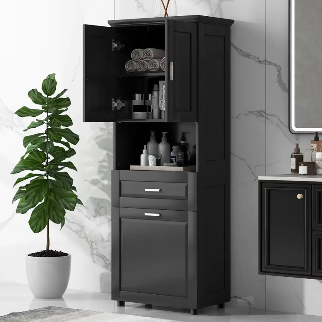 Akoasm Tall Bathroom Cabinet With Upper Storage Cabinet£¬tilt-out Laundry Basket-black
