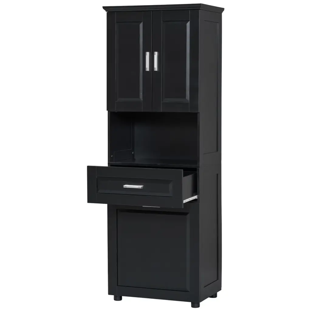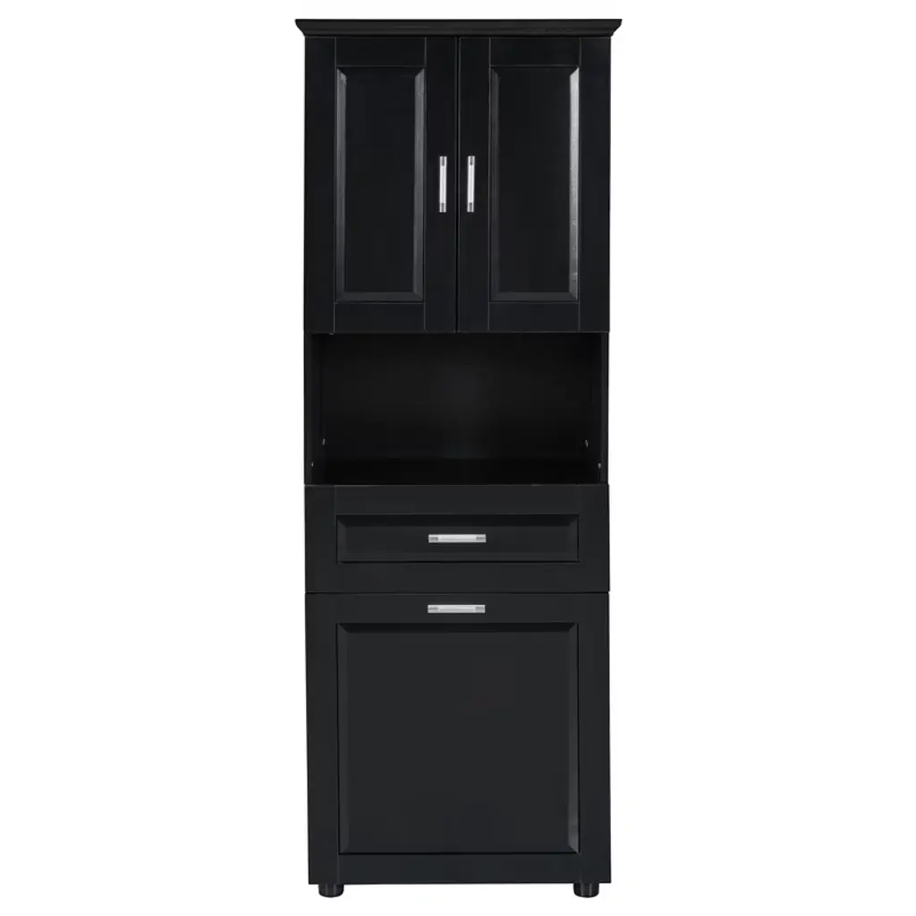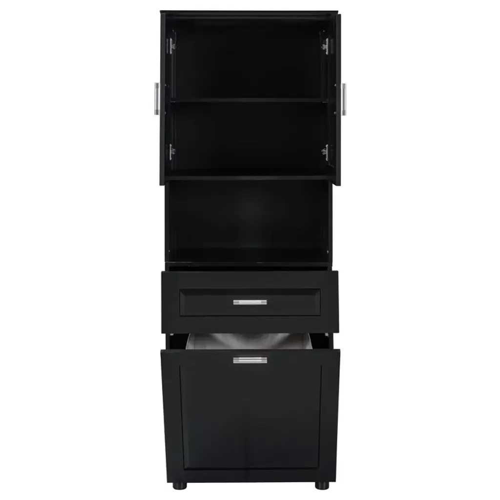 Akoasm Tall Bathroom Cabinet With Upper Storage Cabinet£¬tilt-out Laundry Basket-black
