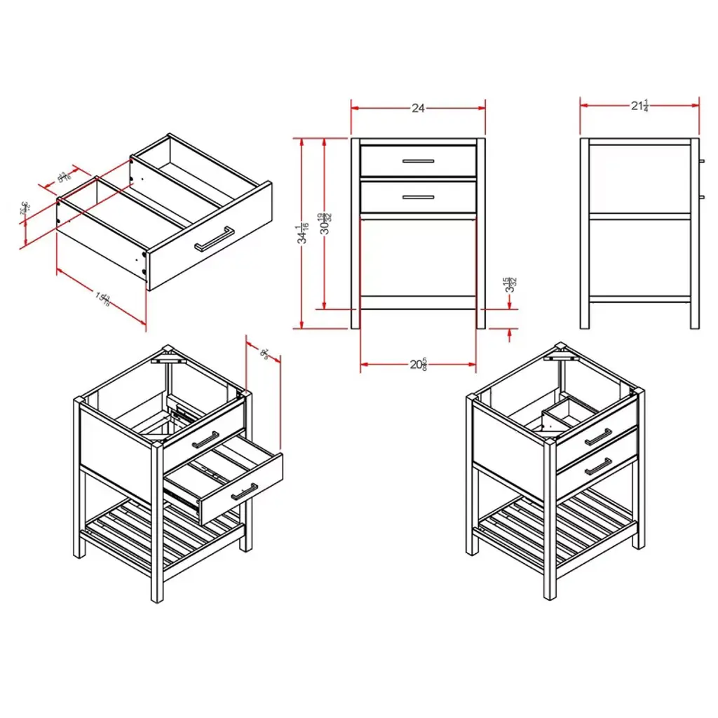 Alaterre Furniture Harrison 24 In. W Vanity Base Cabinet Without Top, Bathroom Storage With Soft-close Drawers, Solid Pine Wood Construction, White