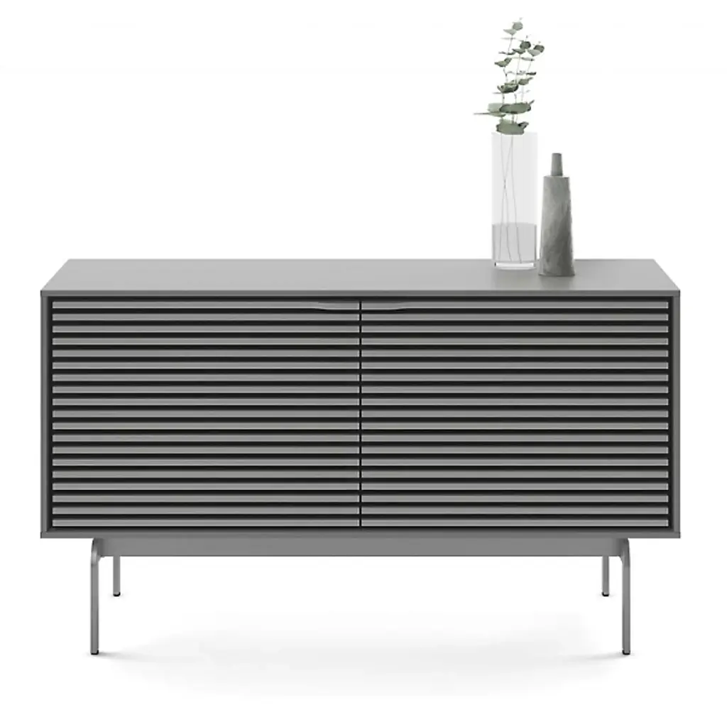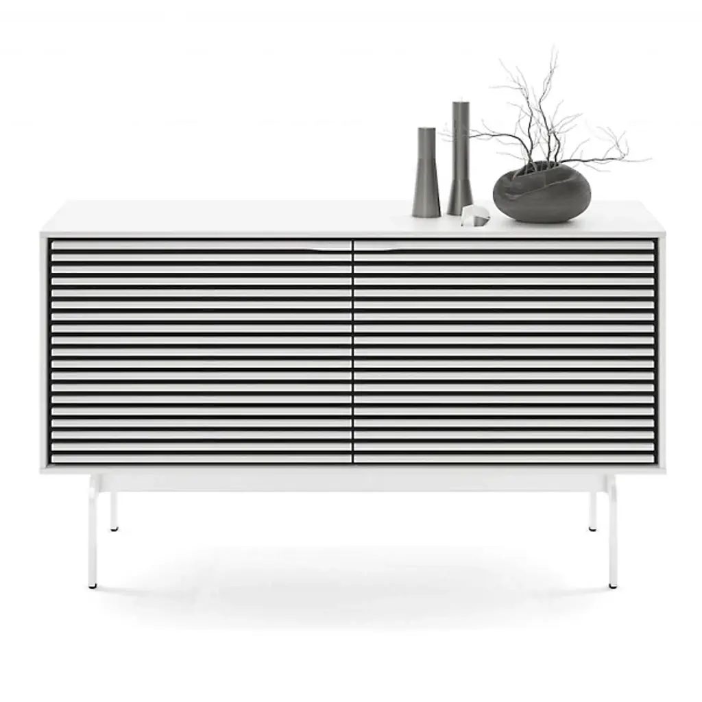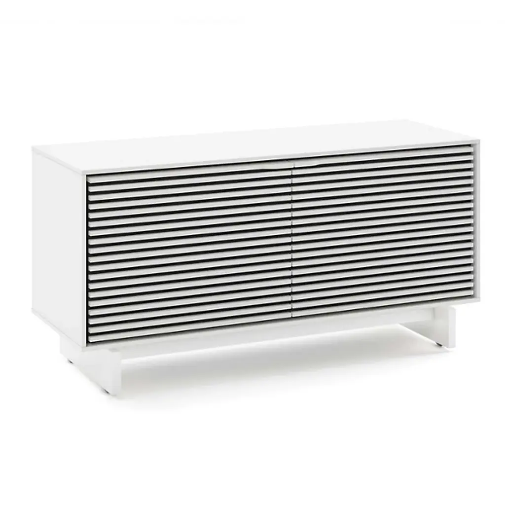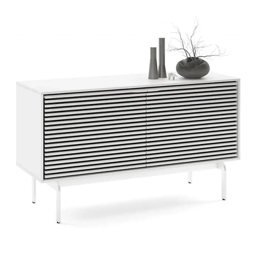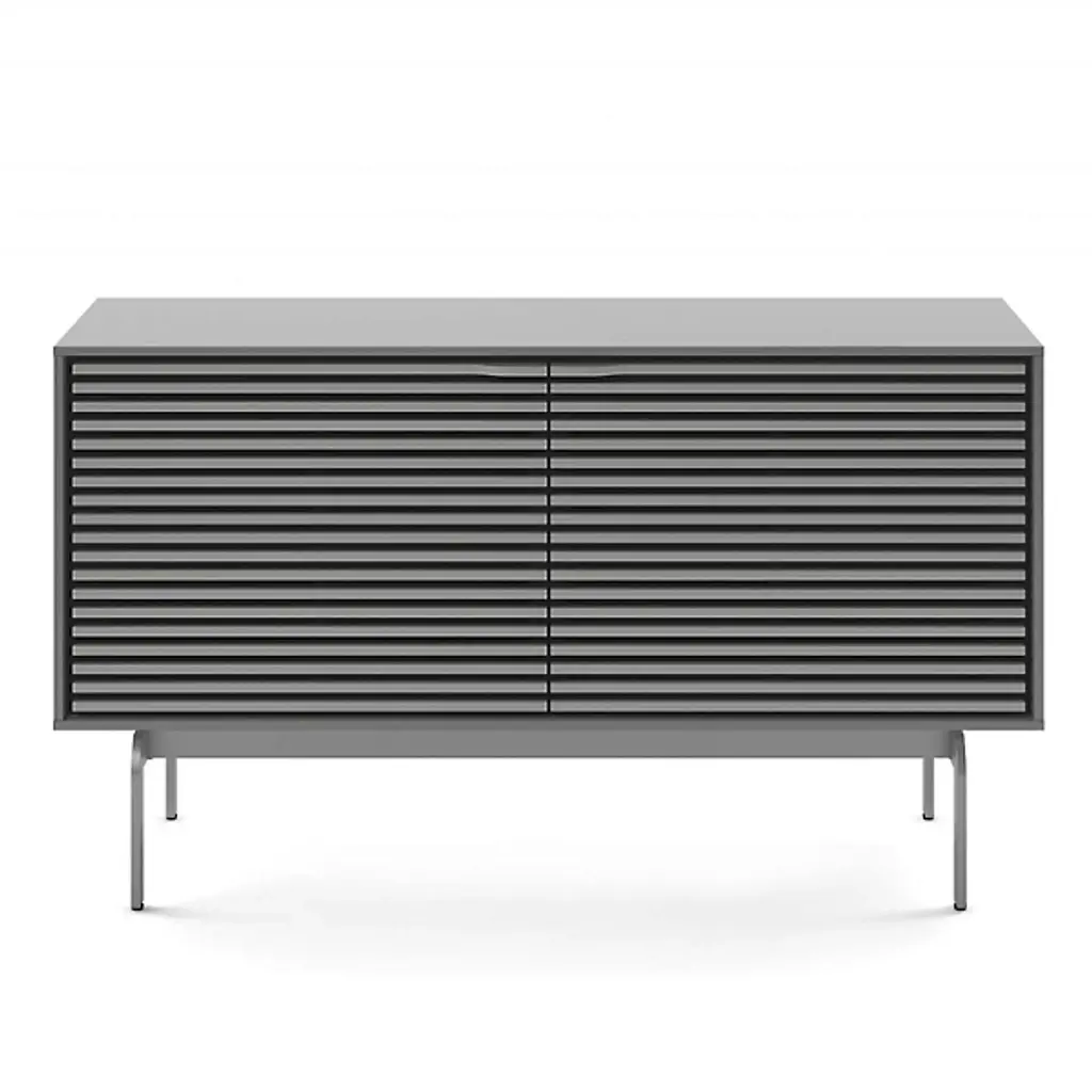 Incredible function married to impressive fashion. The Align Media Cabinet by BDI brings so many innovative features to your entertainment setup, it’s hard to believe the piece isn’t three times the size. Solid Wood shelves and Louvered Wood doors sit within a compact Powder Coated Steel frame. The doors are remote-friendly and the structure features ventilation slats to allow continuous circulation throughout the interior. Adjustable levelers and hidden wheels keep the base ultra sleek while making it easy to reposition the cabinet as needed. Cable management and a rear access panel provide great organizational elements, making full use of the multiple tiers inside the frame. A beautiful accent piece for a modern space, this media cabinet offers everything you need and then some.