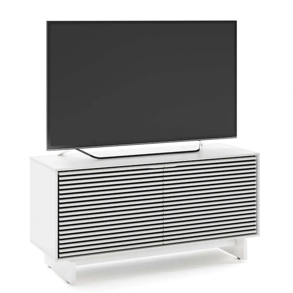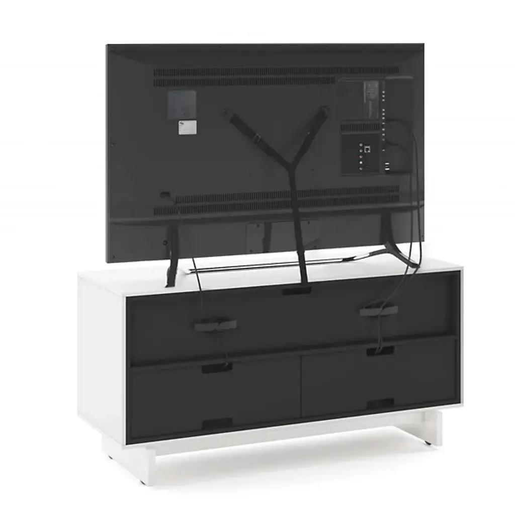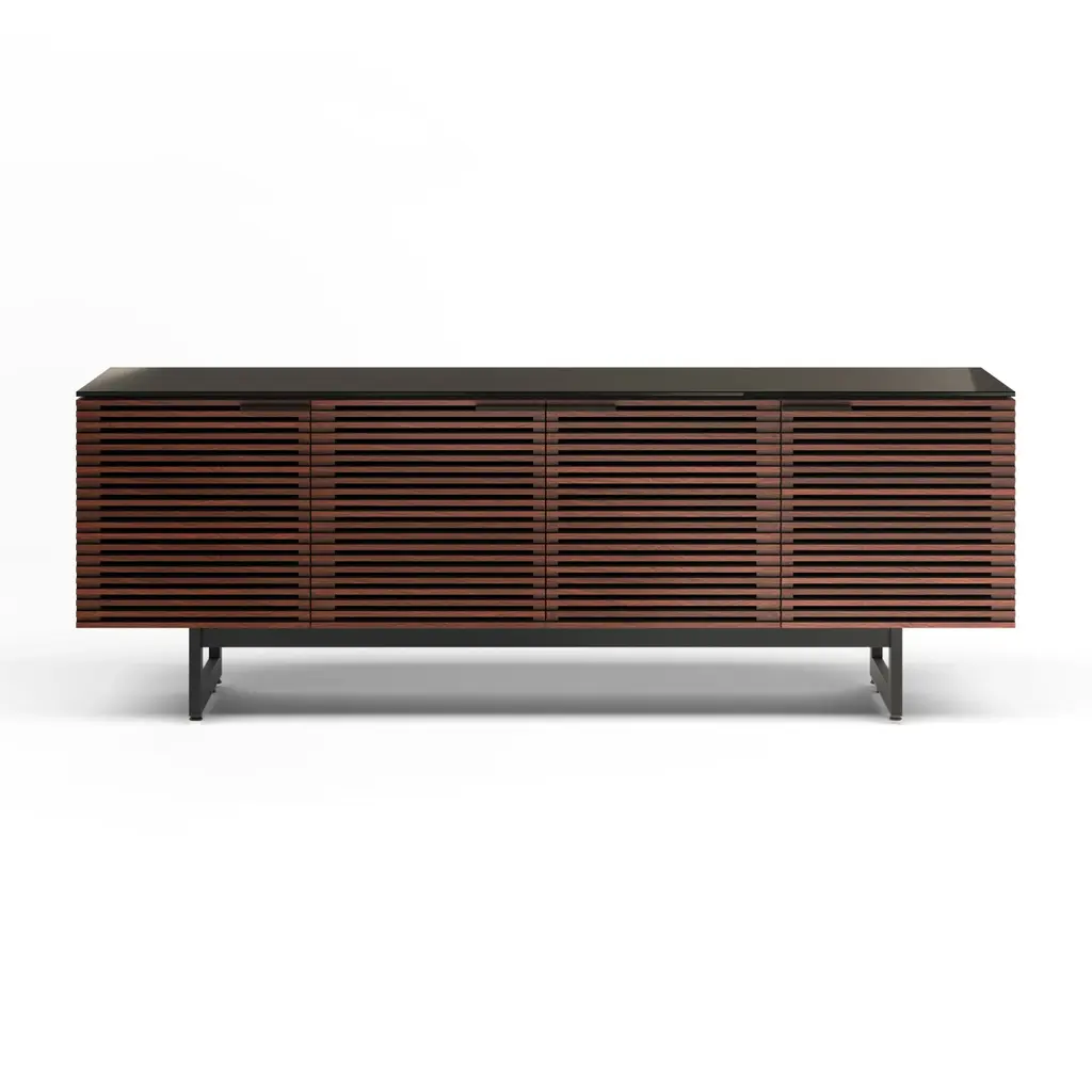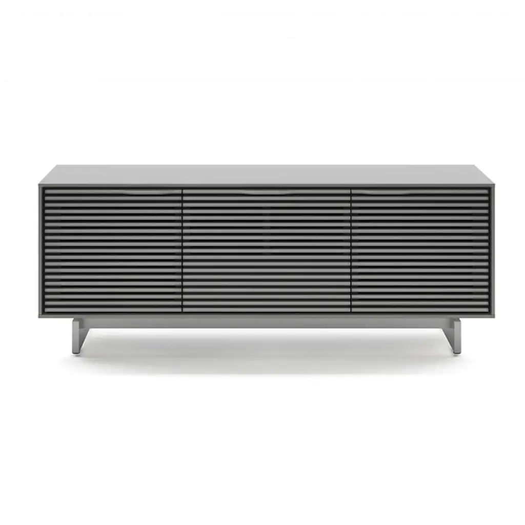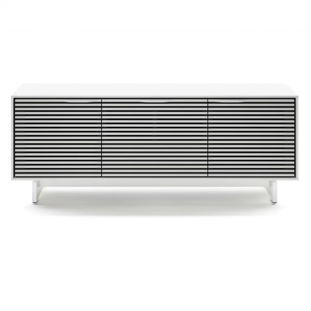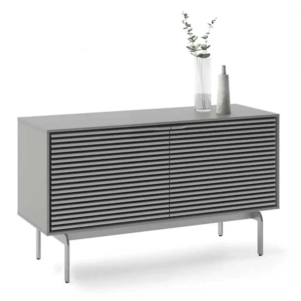 Incredible function married to impressive fashion. The Align Media Cabinet by BDI brings so many innovative features to your entertainment setup, it’s hard to believe the piece isn’t three times the size. Solid Wood shelves and Louvered Wood doors sit within a compact Powder Coated Steel frame. The doors are remote-friendly and the structure features ventilation slats to allow continuous circulation throughout the interior. Adjustable levelers and hidden wheels keep the base ultra sleek while making it easy to reposition the cabinet as needed. Cable management and a rear access panel provide great organizational elements, making full use of the multiple tiers inside the frame. A beautiful accent piece for a modern space, this media cabinet offers everything you need and then some.