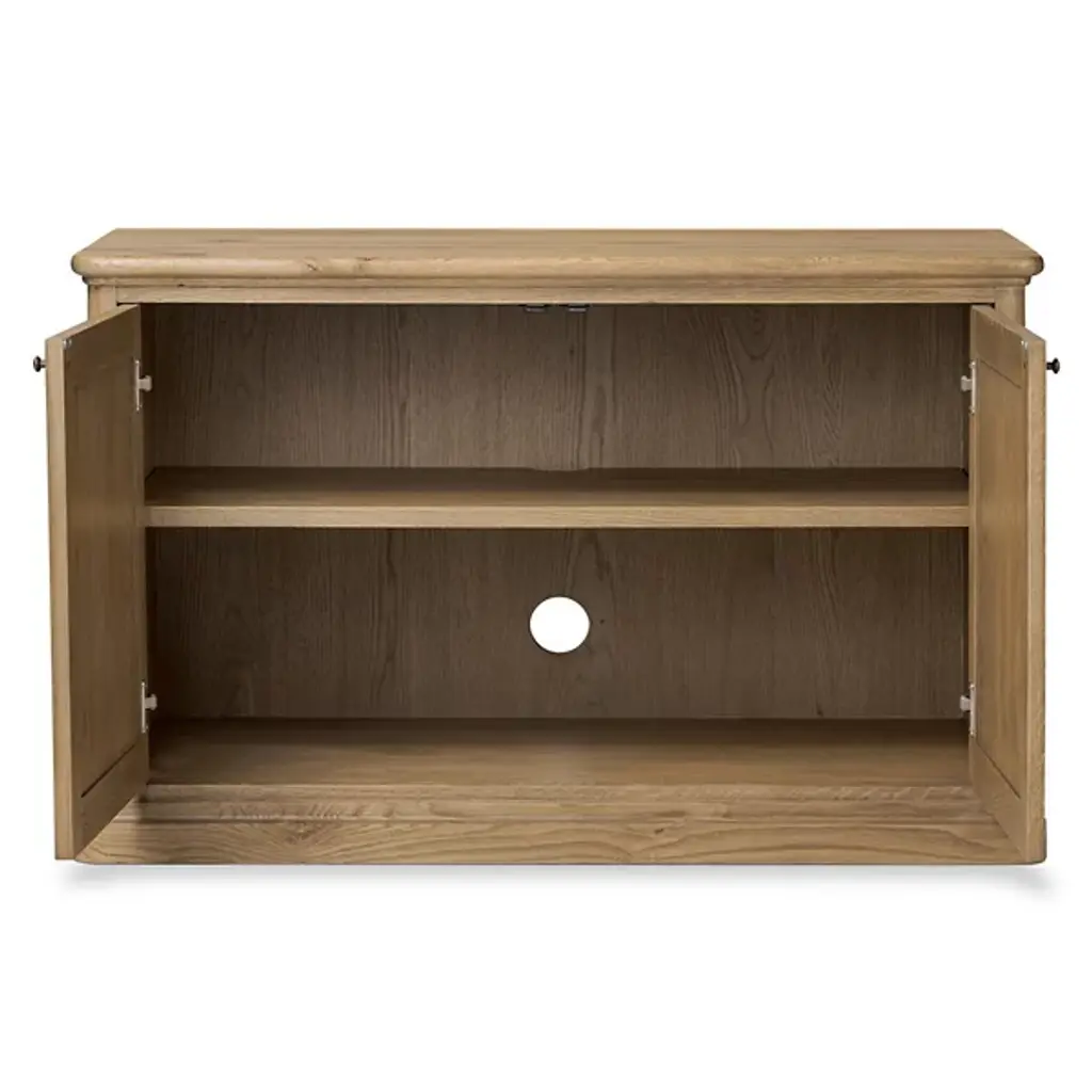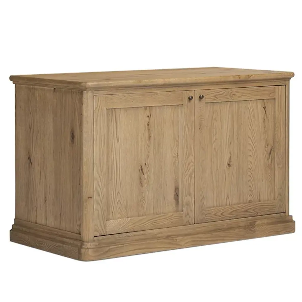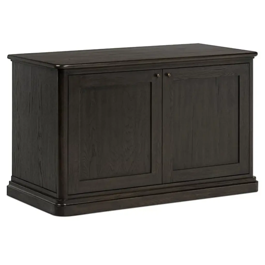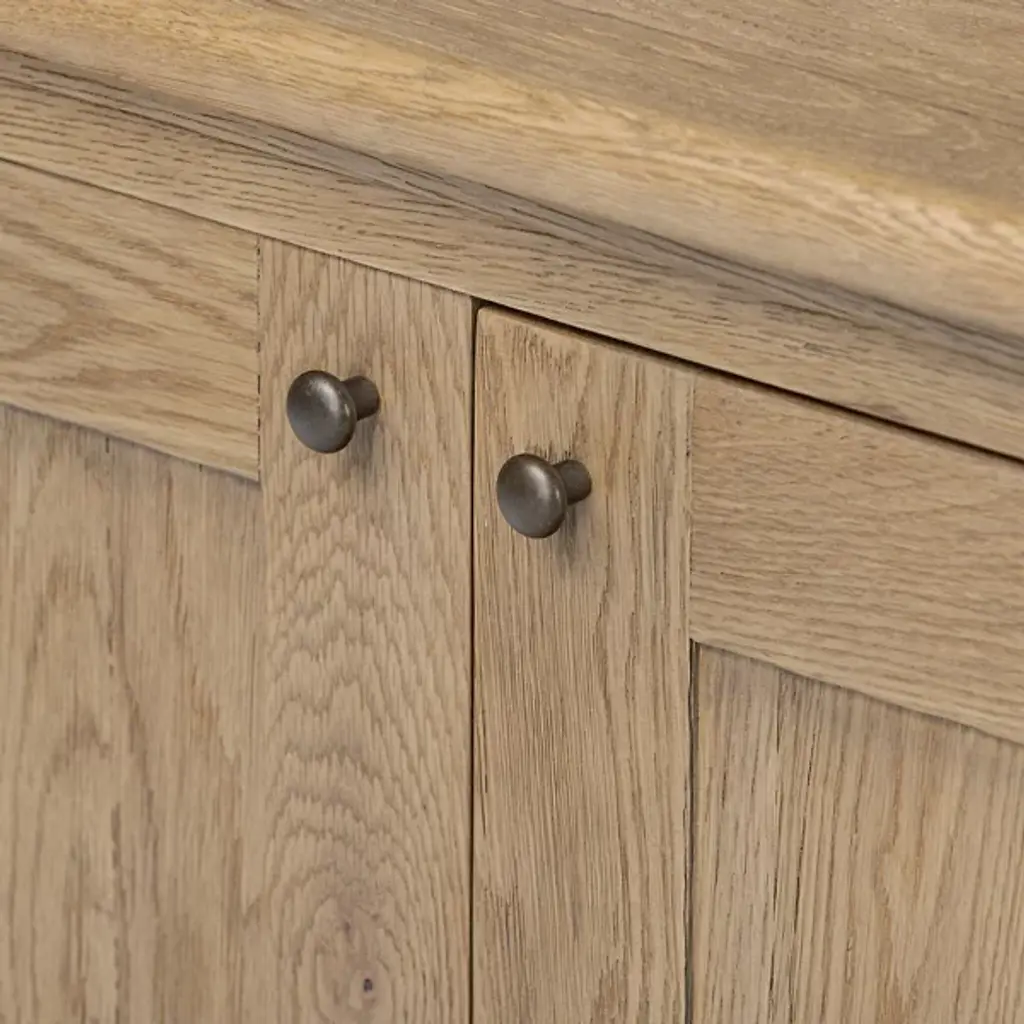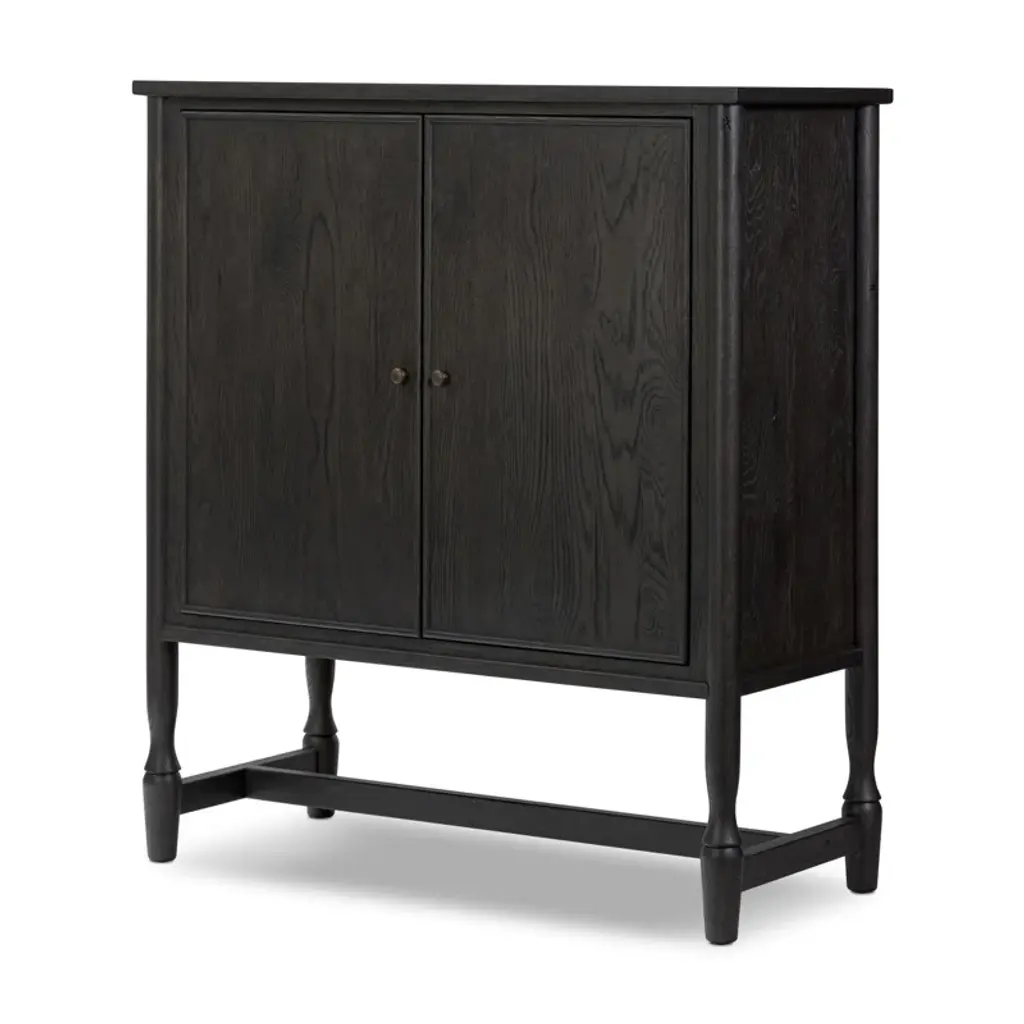 The Amber Lewis x Four Hands Dumont Cabinet from Four Hands. It is a contemporary storage solution with thick oak veneer for durability and a natural look. Your cabinet features understated hardware and a simple design. Two doors conceal wide shelving, providing ample space for storing your accessories and essentials. This multipurpose fixture effortlessly complements a variety of interiors with its streamlined form. Each door boasts a functional pull for easy access.