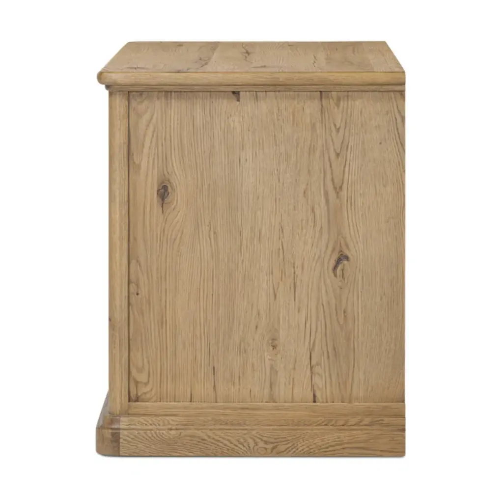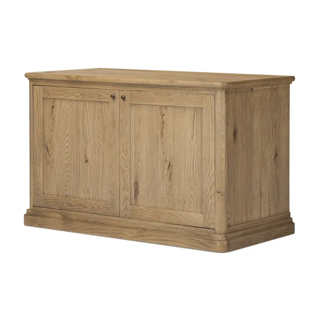 The Dumont cabinet is a design collaboration by Amber Lewis and Four Hands. It is a simple yet impactful design that features two-door oak cabinets with understated hardware; the doors open to wide shelving, creating extra storage in any room.
