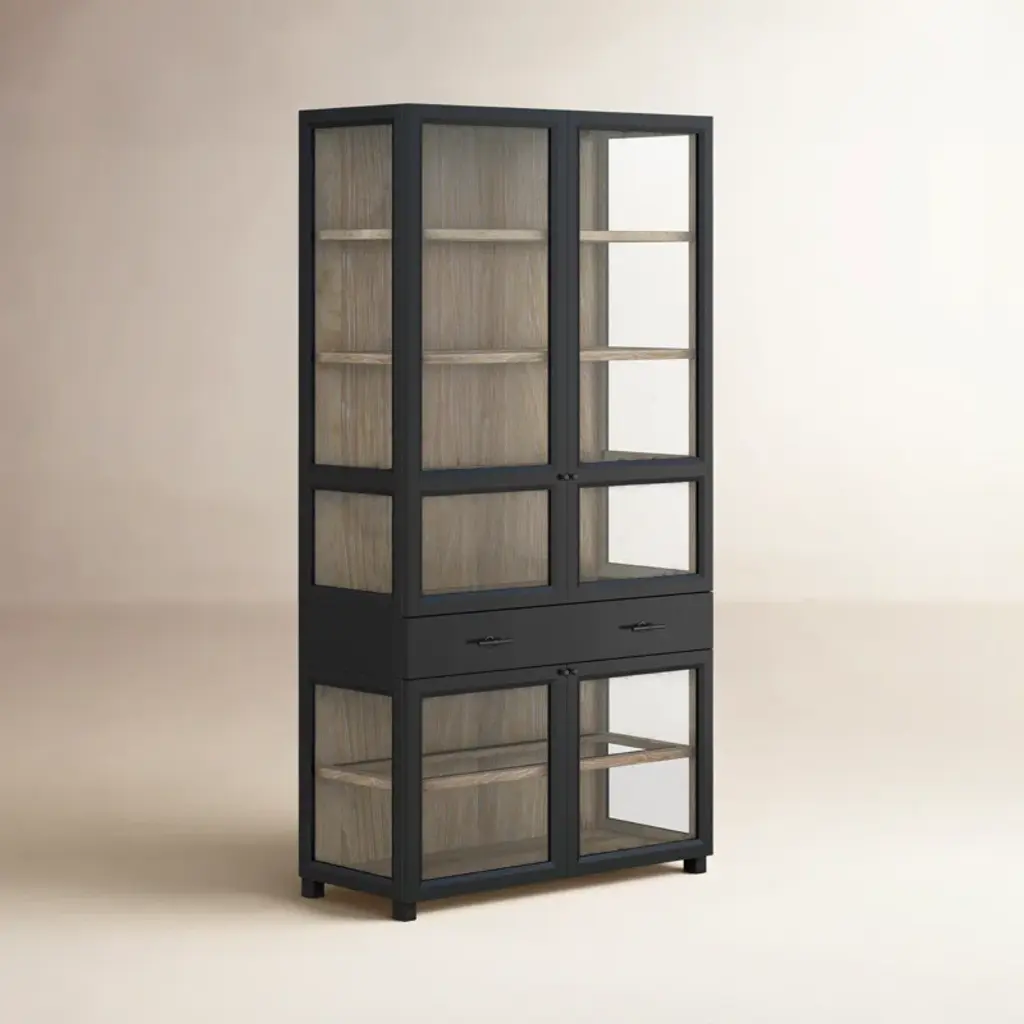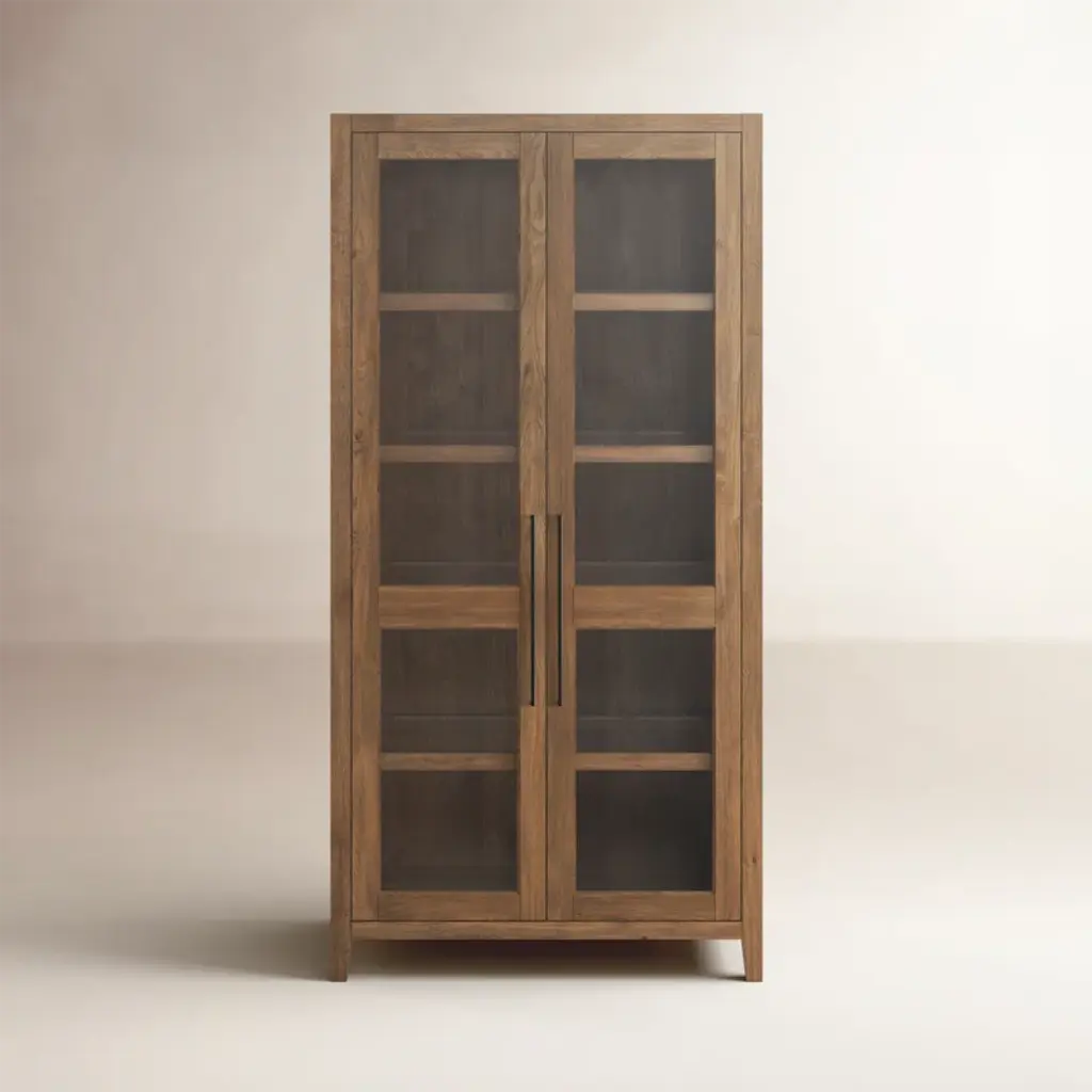 Wood and glass display cabinet.AMBIO fuses a harmonic and easy optics with the expedience of the furniture. The appearance and highly qualitative workmanship makes this furniture collection to an absolute eye catcher in your home.Available in all solid wood types from vitamin design collection: European oak and knotted oak, ash, beech, core beech, American maple, walnut and cherry wood, treated with herbal oil.