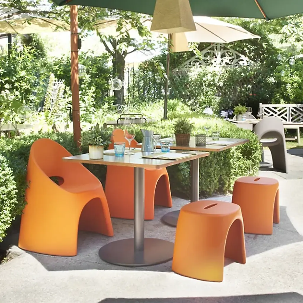 Give yourself a boost with the Amelie Sgabello Stool by Slide. This stool is composed of durable polyethylene so that you can reach your home accessories with ease. This stool’s flat surface keeps you fully supported while ascending to cabinets and storage compartments. The legs of this stool form an arch silhouette, giving this piece its contemporary aesthetic. This furnishment can be placed near your sofa so that you can give your feet a rest.