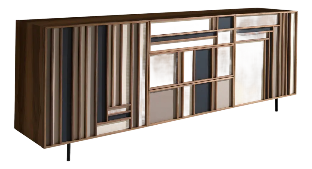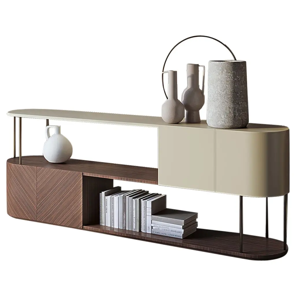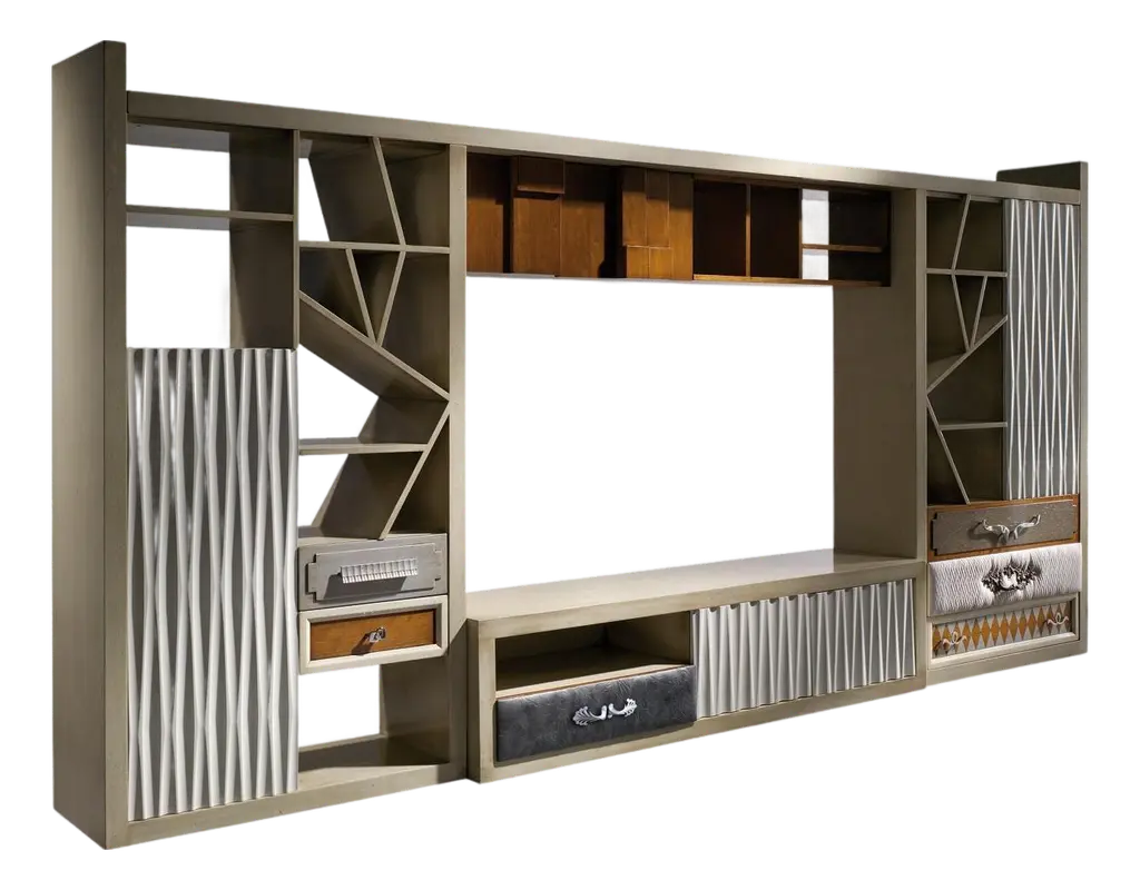Amore TV Cabinet by Lola GlamourDimensions: D 35 x W 345 x H 170 cmMaterials: Wood.We are Félix and Désirée Ramos, brothers and product designers of our brand, Lola Glamour.We are interested in the singular, the different, the beauty, and the balance of color and materials. We have the ability to observe and the ability to translate any beautiful object into a piece of furniture.We are proud of having created our own style, a way of understanding design, which allows us to tell stories and connect with the souls of people and spaces.Lola Glamor is a Spanish company from Soria, which has designed and manufactured unique furniture in noble woods, with artisanal construction and extraordinary finishes since 1995. Artistic furniture that is customized in size and finish according to the client's needs.We offer original furnishing solutions for professionals and individuals from any country in the world, mixing materials, volumes, motifs, and colors that achieve their own style.We are, above all, the sum of a team of people who contribute their dedication and commitment to a unique level of demand, detail, and quality.