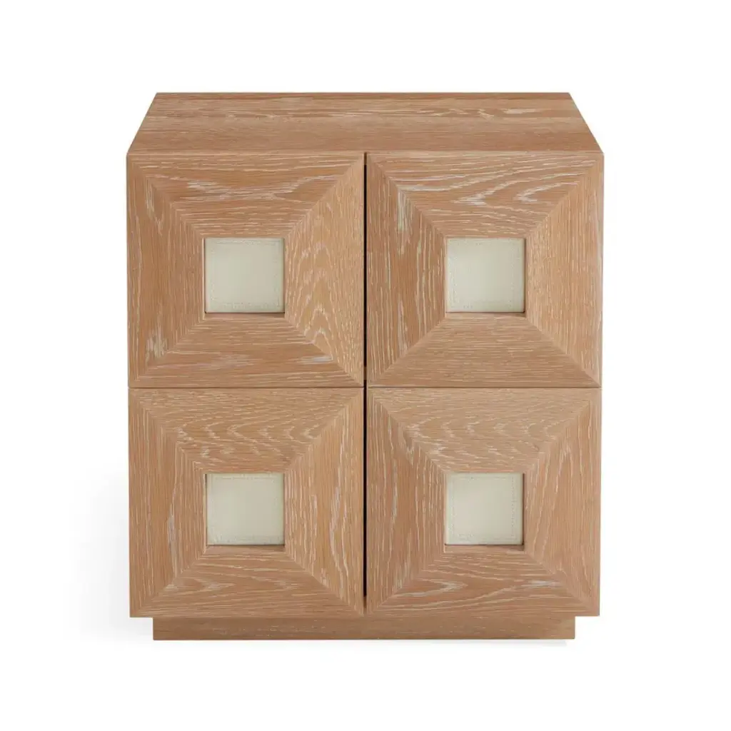 When you're not watching TV, conceal your flatscreen with natural warmth andtexture. Our handsome Andover Media Cabinet is hand crafted of solic red Oak with alabaster white finish. Hinged double doors feature diamond molding andbeautifully carved reeding that runs horizontally and vertically, accentuating the geometric diamond design. Doors open with finger grooves underneath and fold all the way back on quiet piano hinges for unobstructed viewing. Open back and bottom cable port make hanging and hook-up neat and easy. Andover Media Cabinet features:
