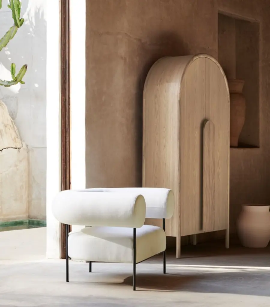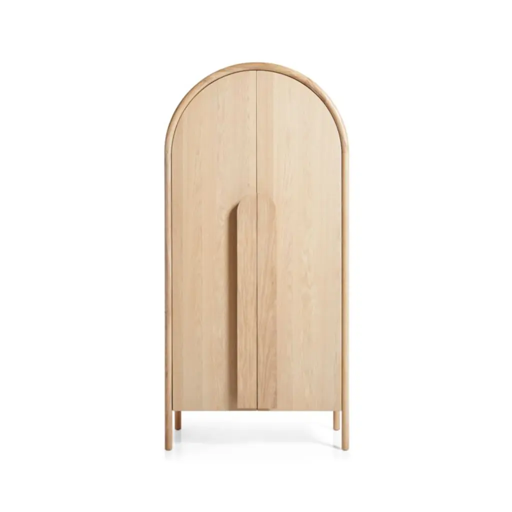 The traditional curio cabinet takes a contemporary turn in Annie. Slender bentwood poles round a perfect arch to highlight the rich grain of white oak showcased in large, flat-front doors and brought into focus with a natural finish. Cleanly integrated into the arcing design, the long, rounded pulls open to reveal one fixed and two adjustable shelves for stashing linens, entryway essentials or dining room serving ware. Designed for us exclusively by Leanne Ford, the Annie cabinet refreshes household storage with a look that's current and clean-lined.Curated and crafted around the world, our first furniture and decor collaboration with design star Leanne Ford brings her cool, effortless vibe home to you.