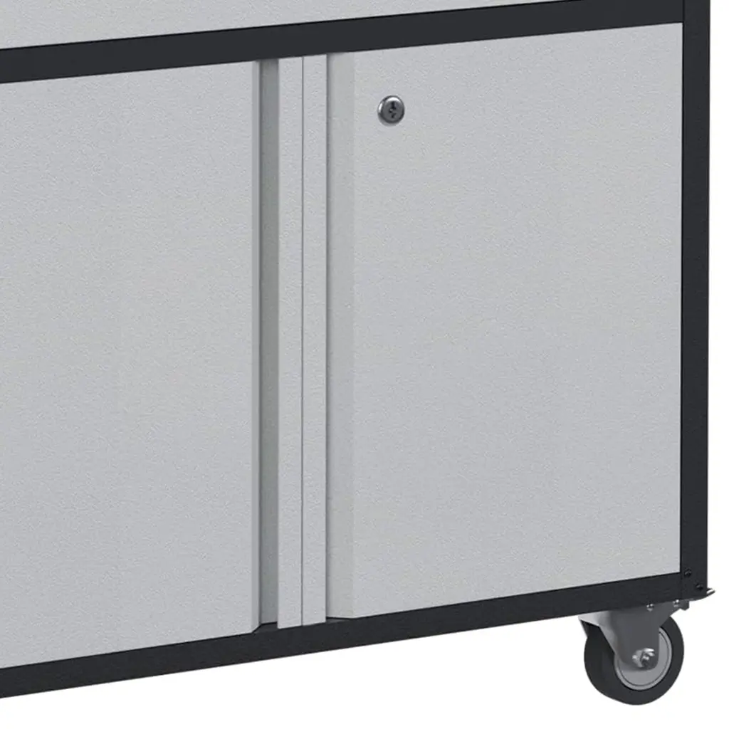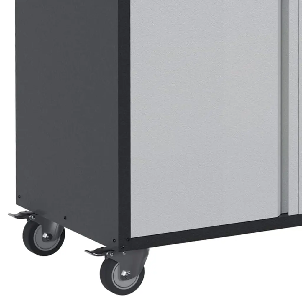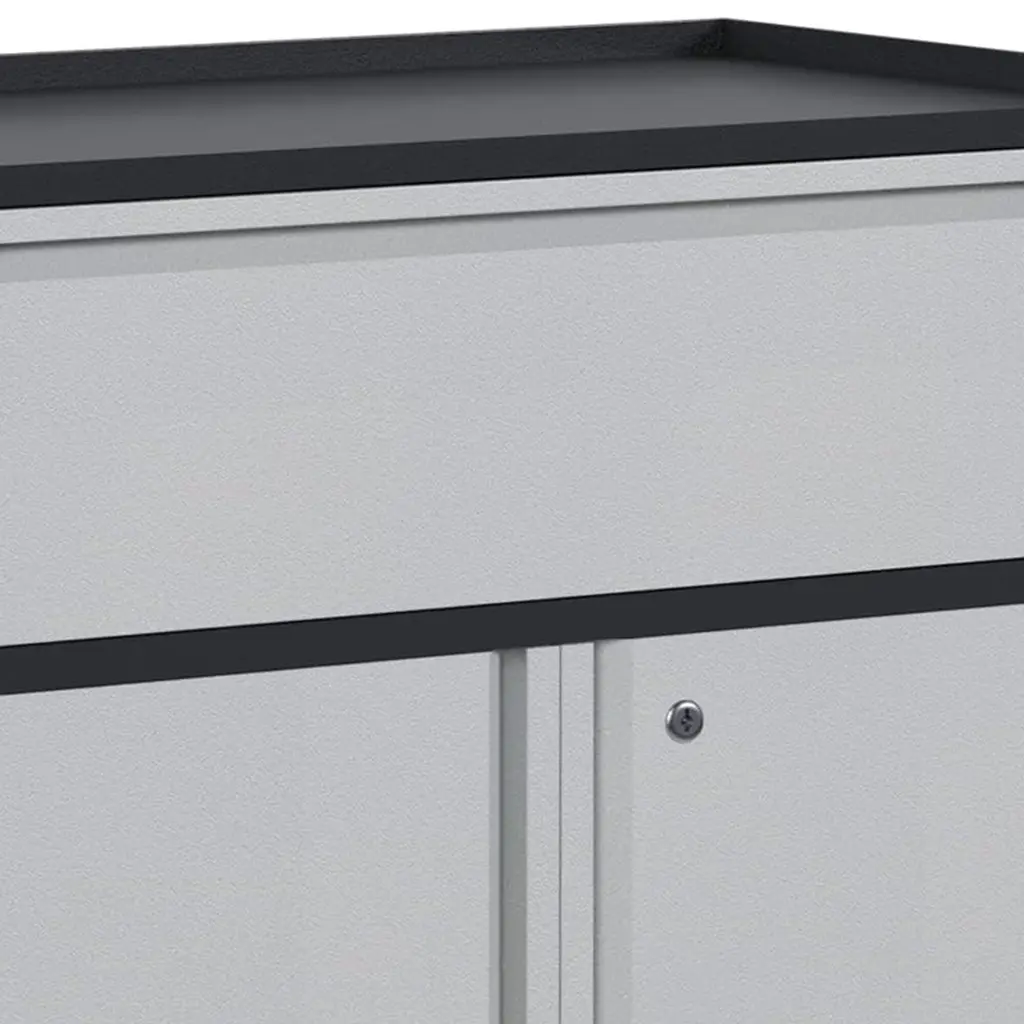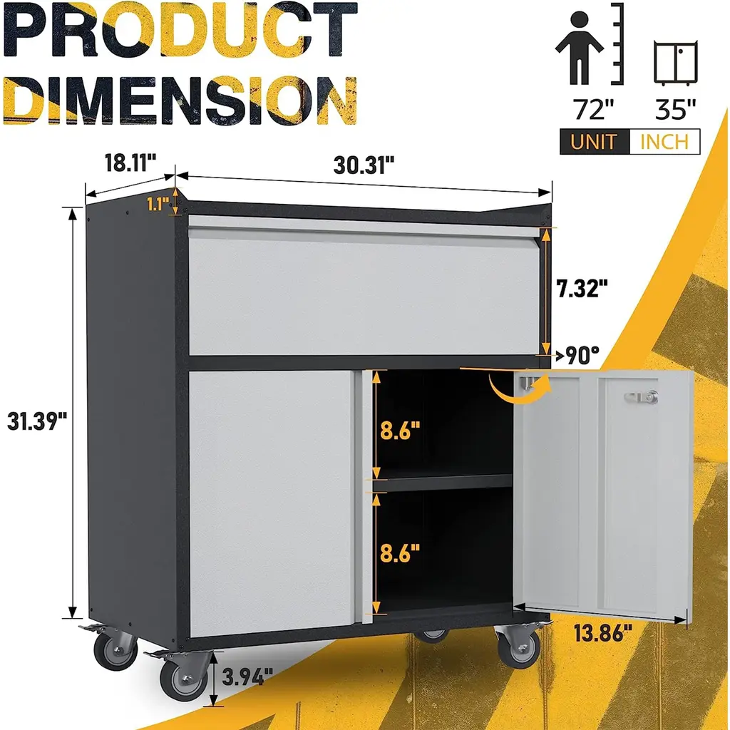 Enjoy a clutter-free and organized space for your garage, office, home, or school with the AOBABO Steel Lockable Wheeled Storage Cabinet with Drawer. This versatile cabinet combines sturdy construction, adjustable shelves, and a sleek design to meet all your storage needs. Keep your items secure and protected with the lockable wheels and doors, ensuring the safety of your valuables and power tools while offering the convenience of easy moving. The sleek and modern design seamlessly blends with any environment so you don't have to worry about redecorating. With adjustable shelves, you can customize the organizer to fit your storage requirements, great for files, art supplies, woodworking tools, and more. The additional drawer is great for easily accessing your essentials. Made from solid steel materials, this cabinet is built to last. Cleaning and maintenance are a breeze with the easy-to-clean surface, allowing you to effortlessly wipe away any dirt or spills. Get ready to experience the convenience and reliability of a well-organized space with the Aobabo Steel Lockable Cabinet with Drawer. Safeguard your valuable belongings with the lockable wheeled storage cabinet with drawer that provides peace of mind and enhanced security Adjustable shelves allow you to configure the cabinet fit to accommodate your unique storage needs Cabinet top features 3 guardrails to keep small items from falling Crafted from sturdy solid steel material ensuring exceptional durability and long-lasting performance Multifunctional all-in-one design with drawer ideal for storing various items such as tools, supplies, files, and much more Easy-to-clean surface makes maintenance a breeze, simply wipe away any dust or spills to keep it looking pristine Lockable wheels and doors ensure that your tools and equipment stay safe and secure while offering the convenience of easy moving Maximum weight capacity: 160 pounds (80 per shelf) Material: Steel Color: Black/Grey Dimensions (L x W x H): 30.31 x 18.11 x 35.33 inches Weight: 78.1 pounds Manufacturer warranty: 30-day warranty