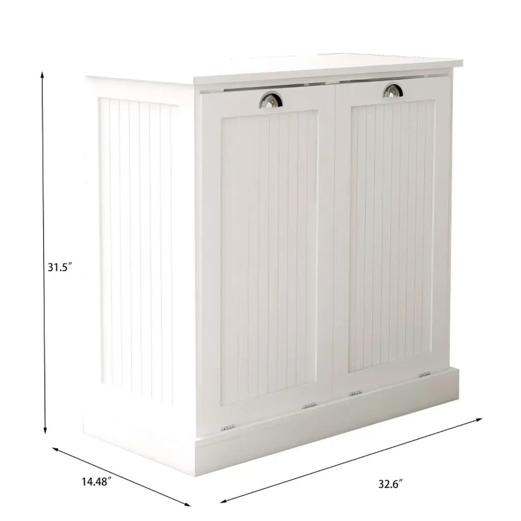 Aprilsoul White Two-compartment Tilt-out Laundry Sorter Cabinet With Removable Bags, Durable And Stylish Storage, Easy Assembly