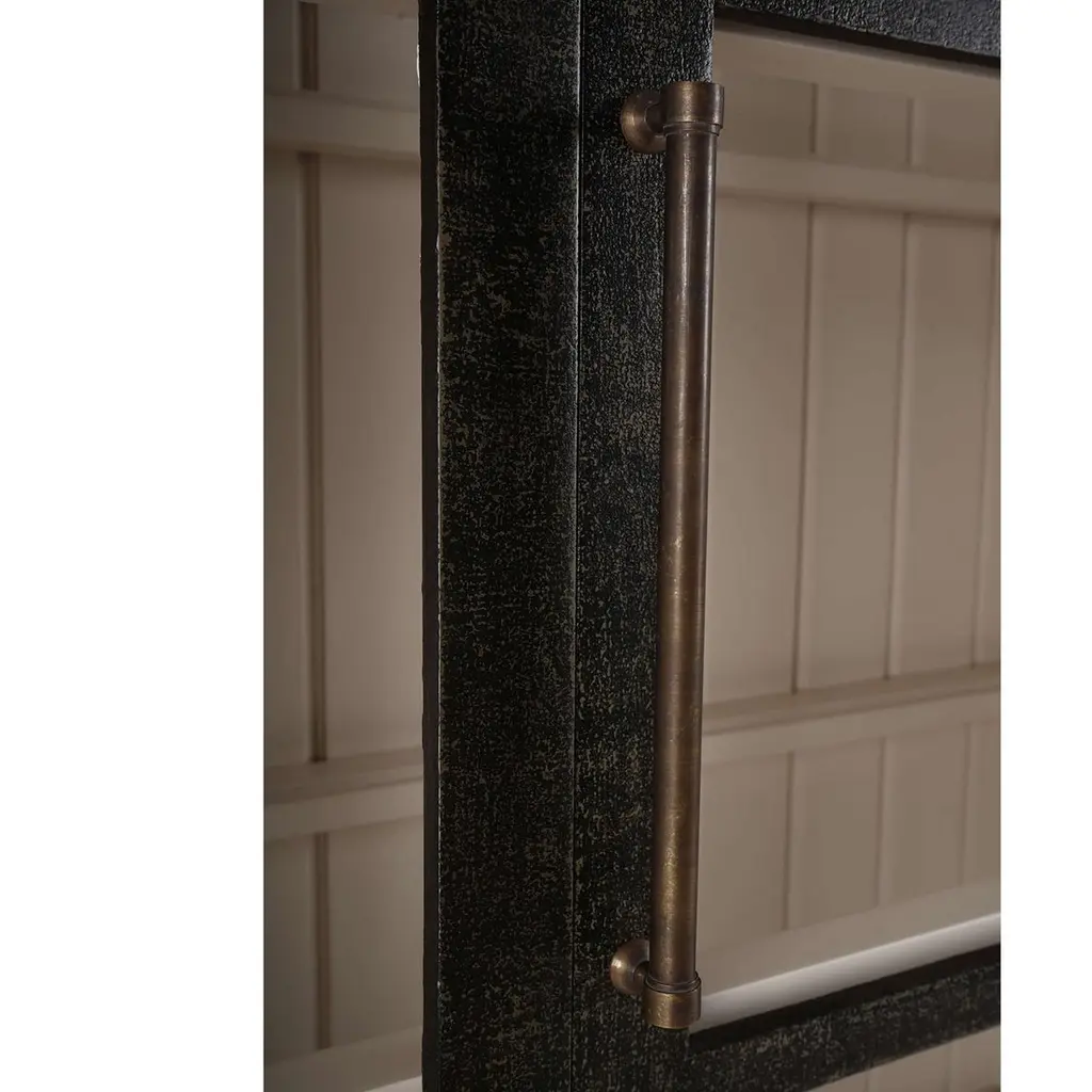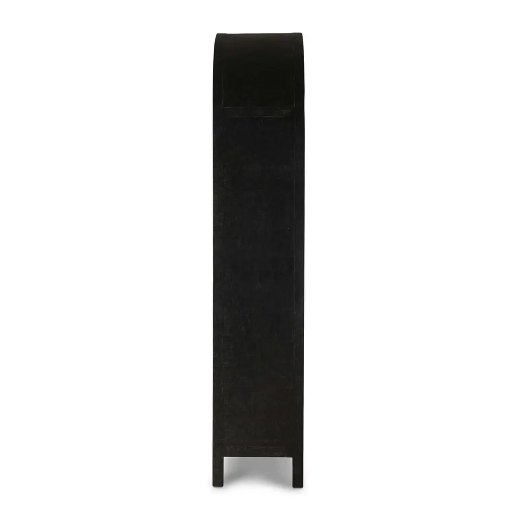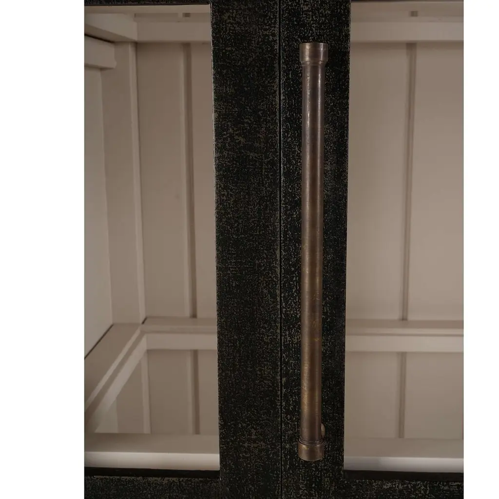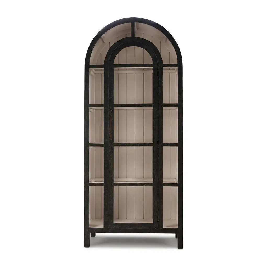 A French Industrial Modern-inspired statement piece that combines elegance and functionality. Crafted with a sturdy wooden frame, this cabinet features an eye-catching arched design that adds a touch of sophistication to any room. The vintage black finish provides a striking contrast to the putty painted interior, enhancing its visual appeal.The cabinet's inner arched framed glass door allows you to showcase your treasured items with ease. Inside, the spacious shelves offer ample room for displaying collectibles, books, or decorative pieces. Perfect for your living room, dining area, or hallway, this versatile cabinet seamlessly blends practicality with refined style.Dimensions: 39" W x 18" D x 93" HCustom finish options are also available. Contact us to learn more.
