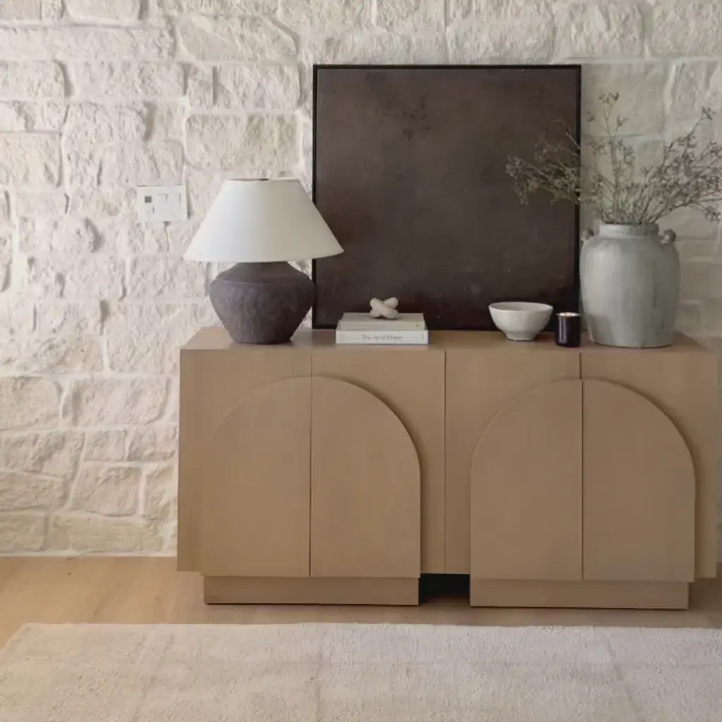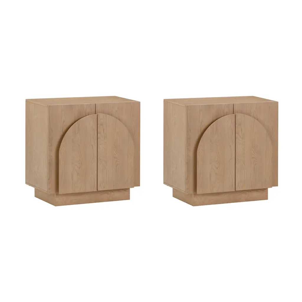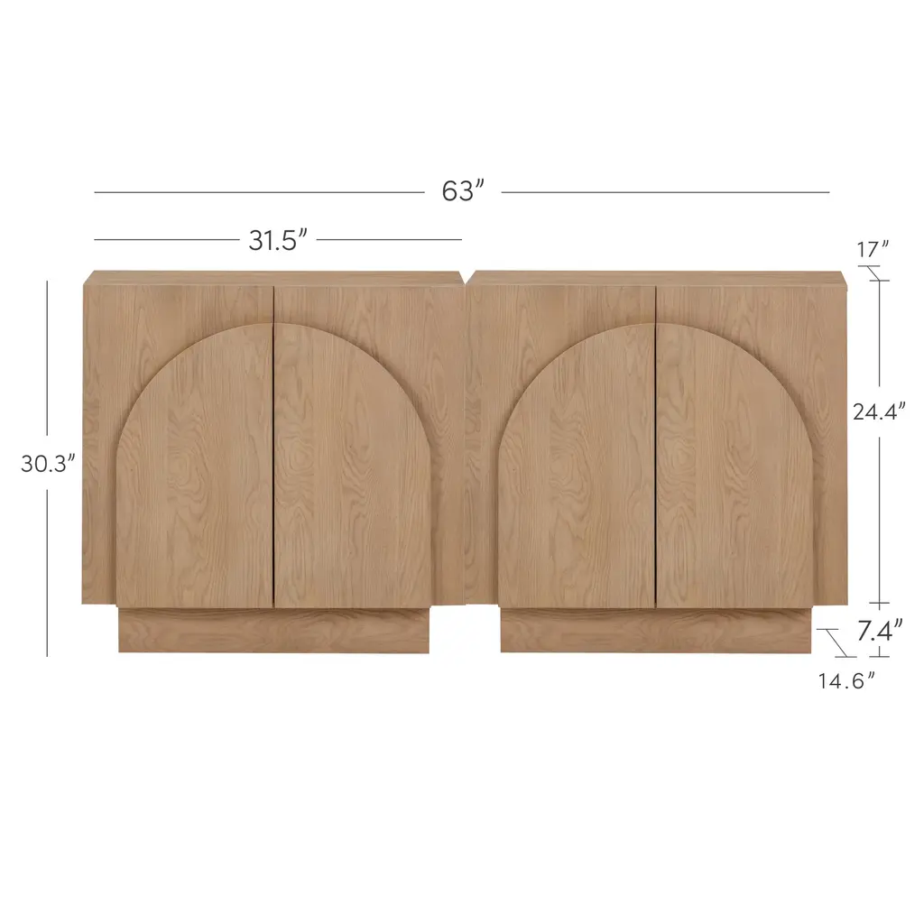 Arched Tv Console Credenza Oak (Set Of 2)