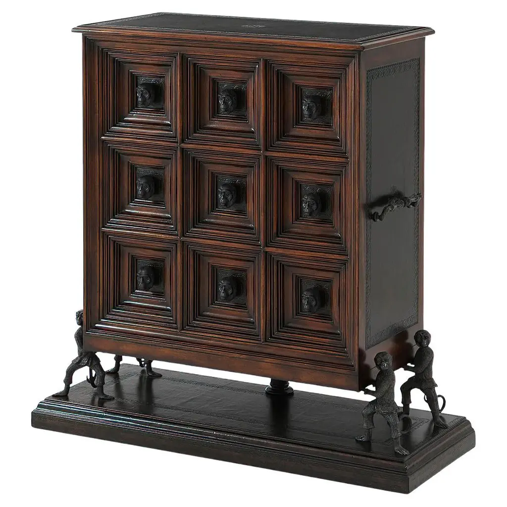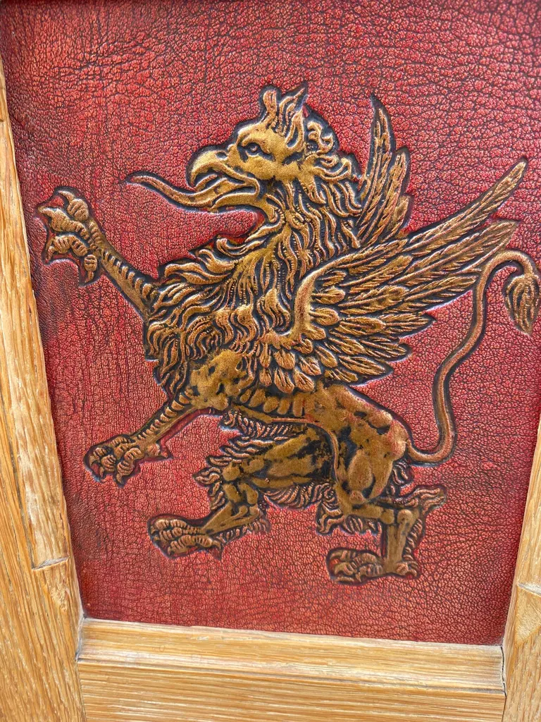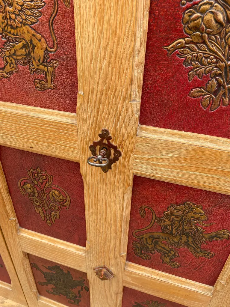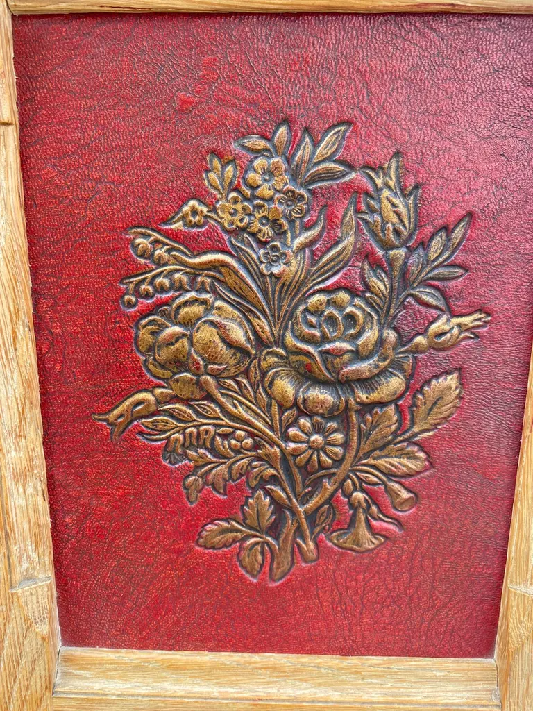Art Deco Cabinet In Oak And Embossed And Gilded Leather, Circa 1940-1950