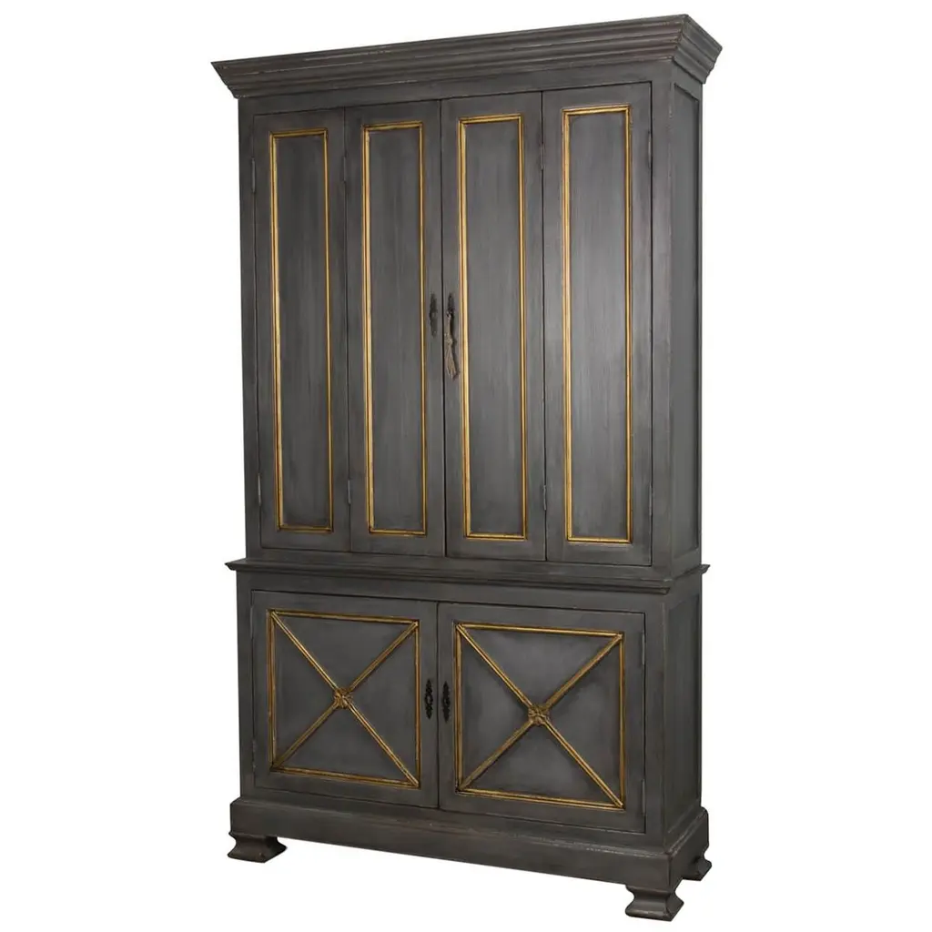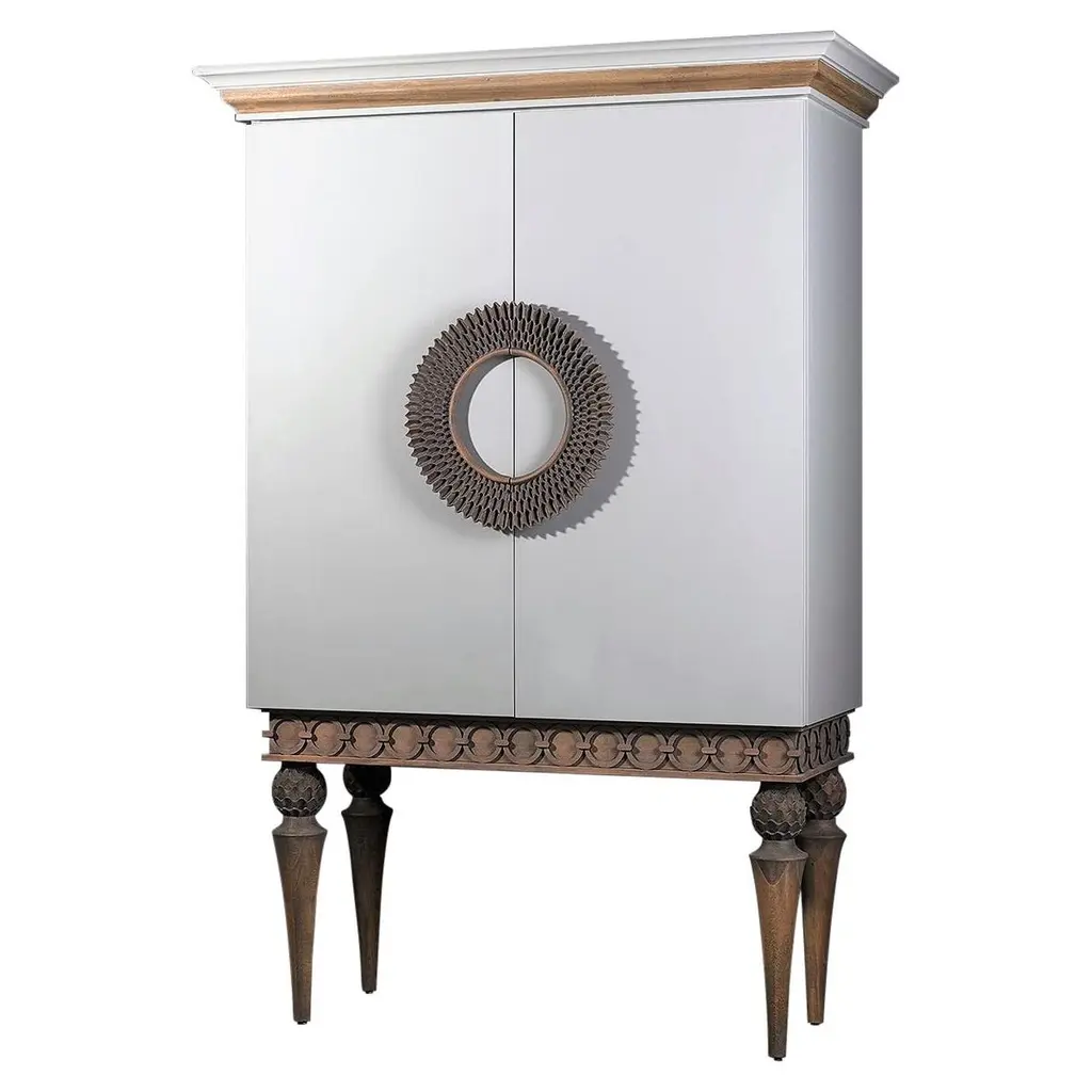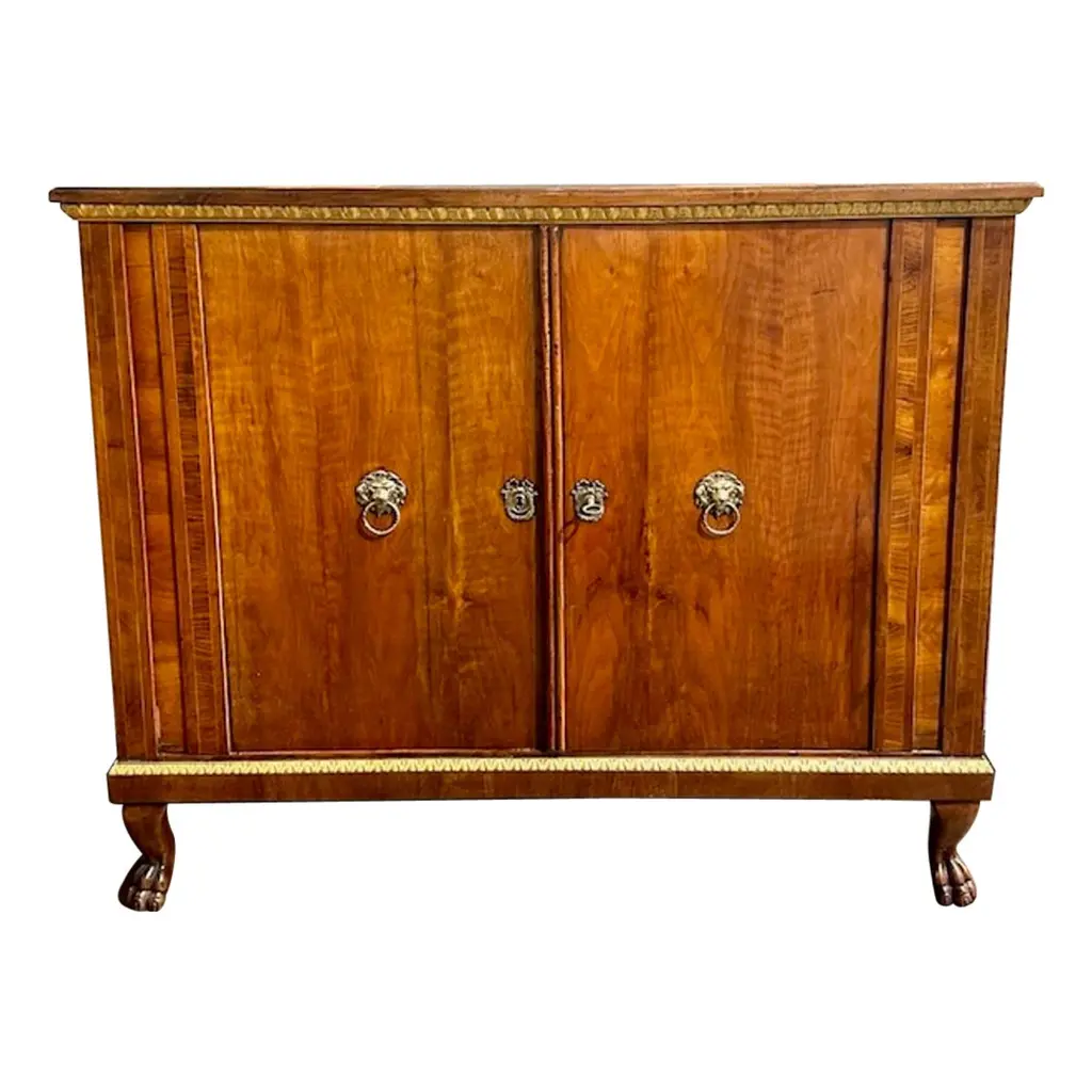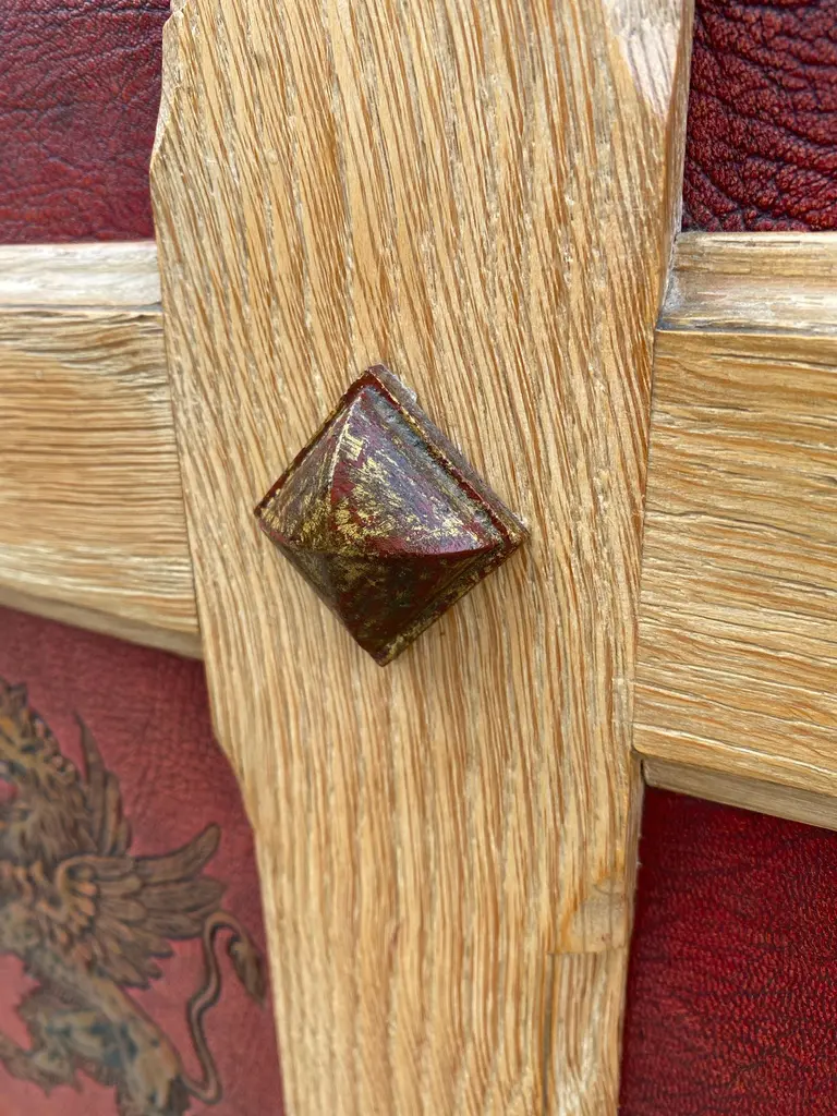 Art Deco Cabinet In Oak And Embossed And Gilded Leather, Circa 1940-1950