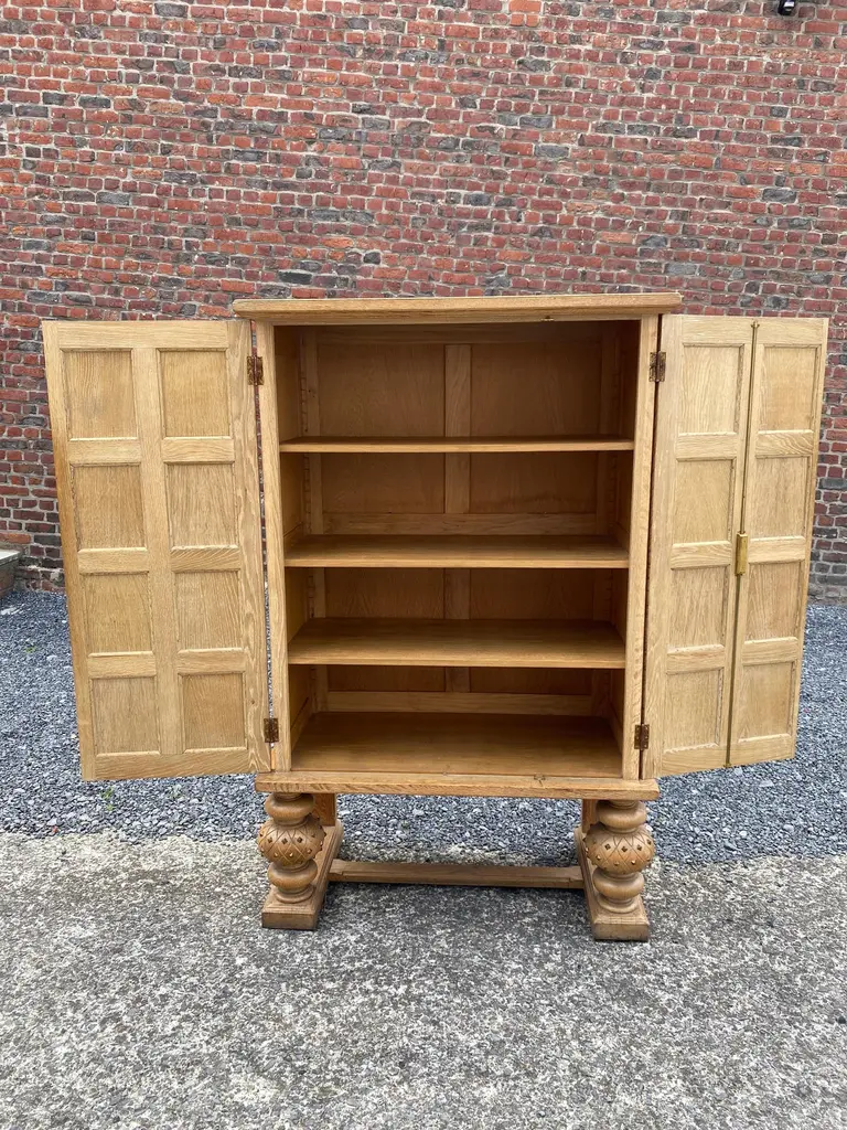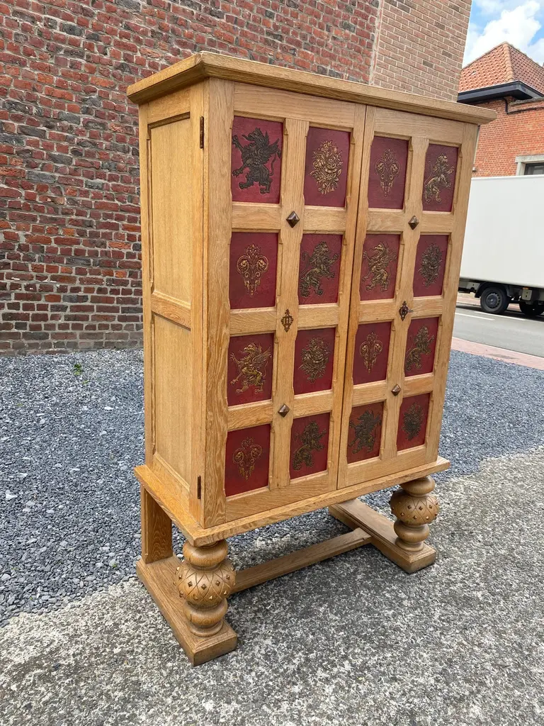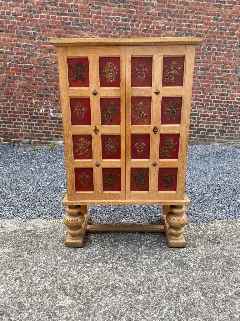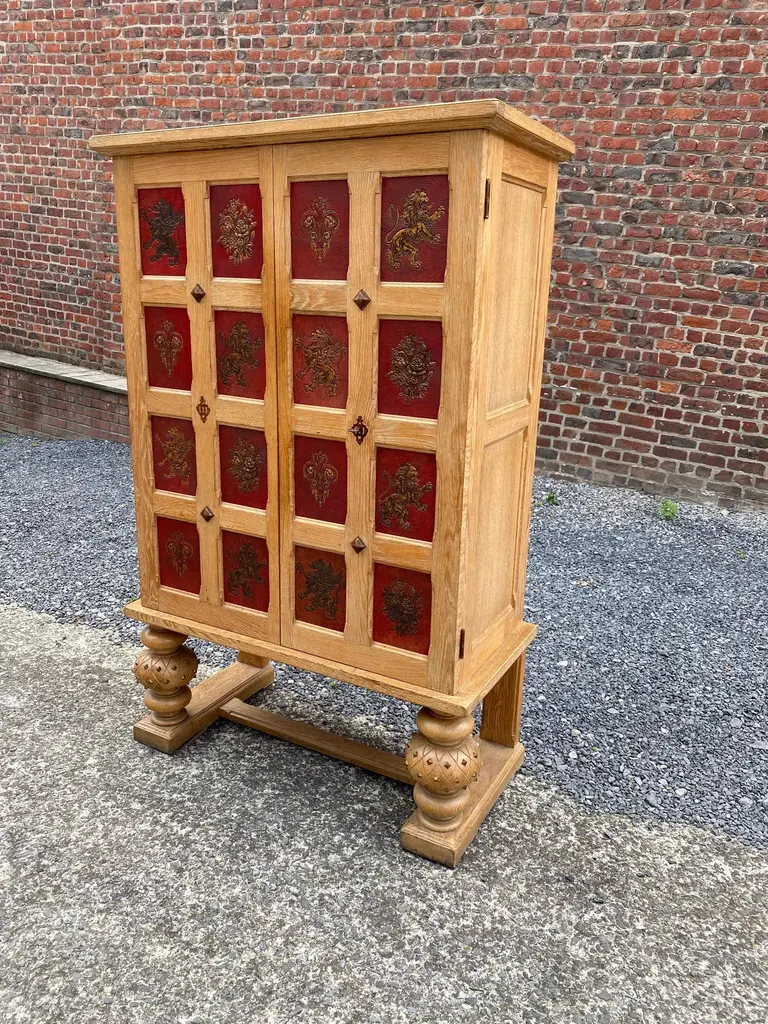 Art Deco cabinet in oak and embossed and gilded leather, circa 1940-1950.