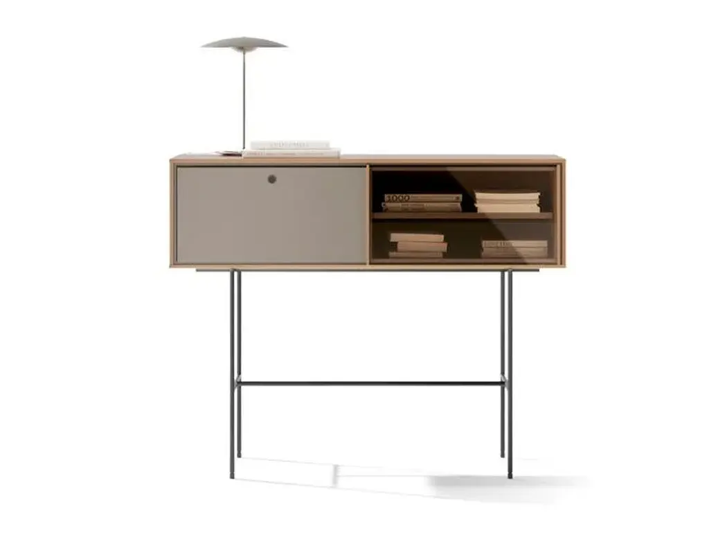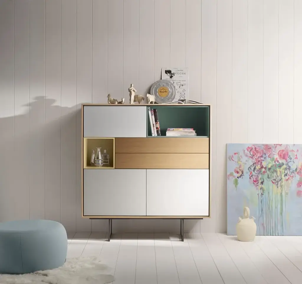 The Aura collection features an external structure (case) into which various modules can be freely inserted.All components are available in any wood or lacquer finish from the TREKU collection, with no change in price.Pictured:Storage box module 128 x 112 x 47 cm in Tobacco OakDoors 64 x 48 x 47 cm in StoneDoors 64 x 32 x 47 cm in StoneOpen compartment 64 x 32 x 47 cm with inner box in ForestOpen compartment 32 x 32 x 47 cm with inner box in OchreDrawers 96 x 32 x 47 cm with drawer front in Tobacco OakFor additional finishes, please contact our Customer Service Center.The Aura collection has been conceived mainly for sideboards and furniture for living rooms and dining rooms. Its design is inspired by the past and under the influence of the design culture of the Nordic countries, which know how to combine tradition and naturalness with large doses of modernity. The result: a collection full of memories that gives off a very modern aura. The metal and wood legs designed especially for the collection reinforce that retro and timeless look. The finish is very important: walnut and oak wood with a hyper-natural finish and a lacquered look which combine perfectly well with the wood.