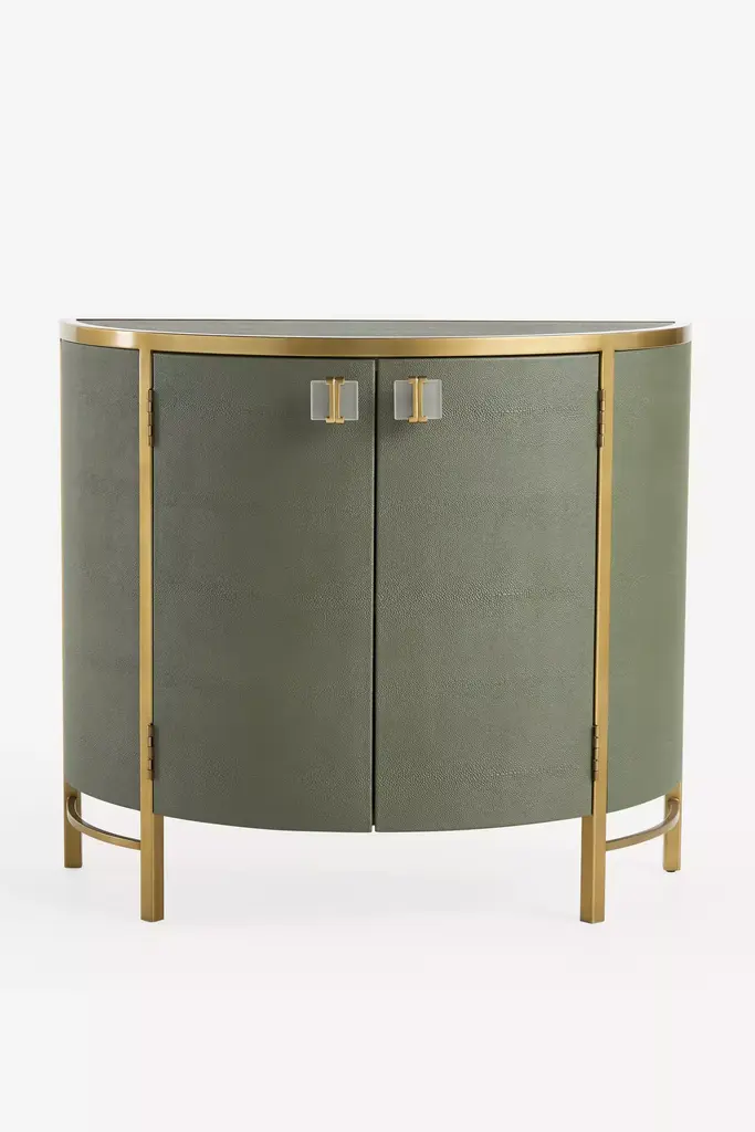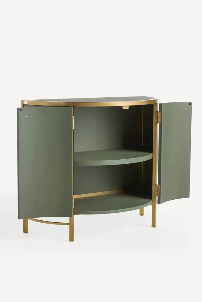 With clean-lined curves and lucite pulls, this mid-century cabinet offers stylish storage for the entryway and more. For ordering assistance and more, please [contact us](https://www.anthropologie.com/help/contact-us#contact-us-section-2). For aesthetic advice and tips to help decorate your space, enjoy our complimentary [home styling services](https://www.anthropologie.com/help/personal-styling-home-decor). For more information on the materials and techniques of this piece, [click here](https://www.anthropologie.com/help/material-care-guide).